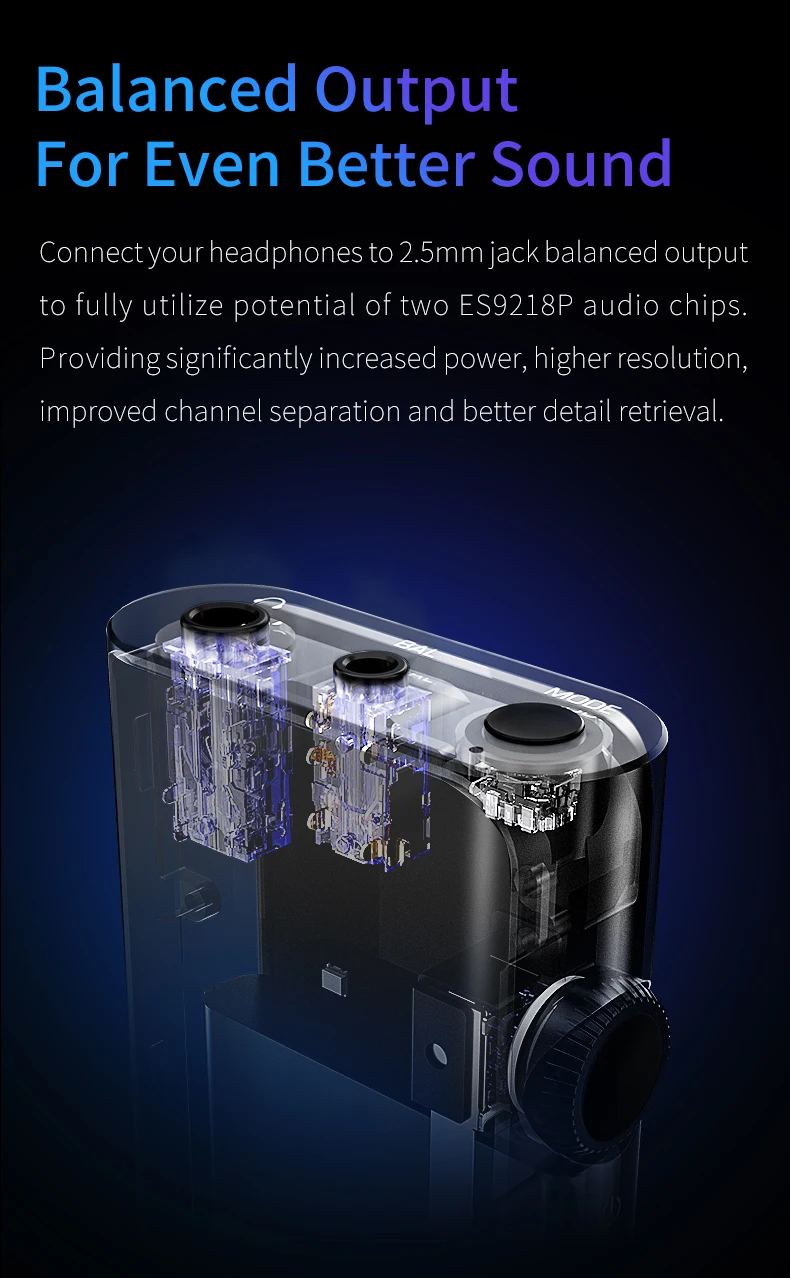 DAC кажется таким же, как тот, что и в Shanling UP2, ES 9218P наследует признанное качество звука популярного портативного плеера Shanling MO. Он обеспечивает высокое разрешение, четкий и мощный выход с низким выходным сопротивлением, будучи очень энергоэффективным.