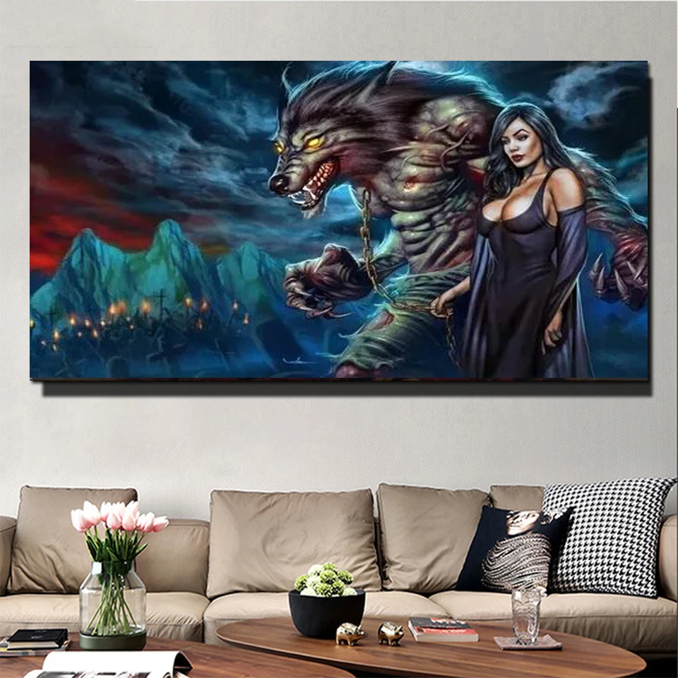 Картина из страз "Фэнтези Волк" Женская 5d "сделай сам" оборотень и призрачная королева вышивка полная квадратная Круглая Мозаика из страз головоломка x92