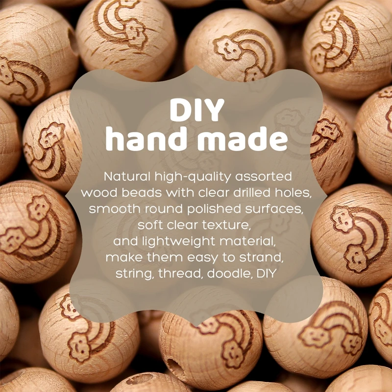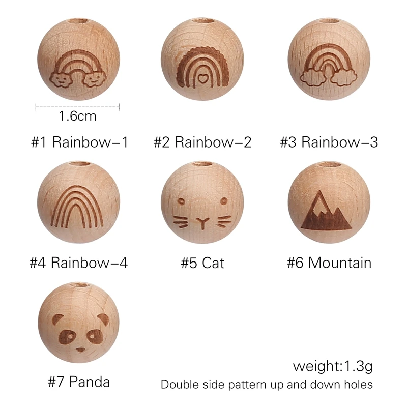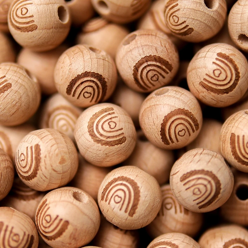 20 шт 16 мм глянцевые Буковые деревянные бусины поверхность печать DIY браслет ожерелье бисер Детские Прорезыватели игрушки Товары для малышей аксессуары
