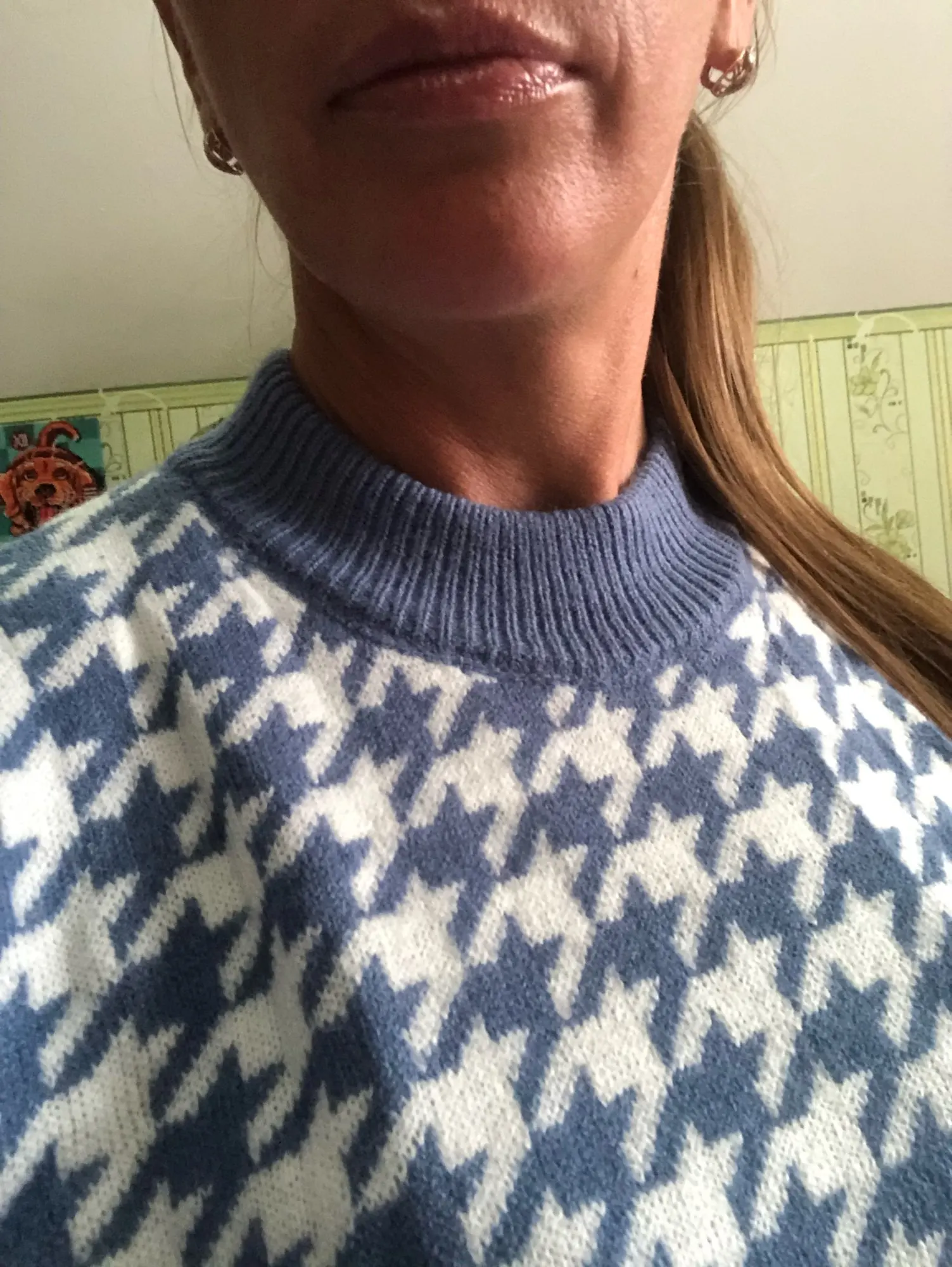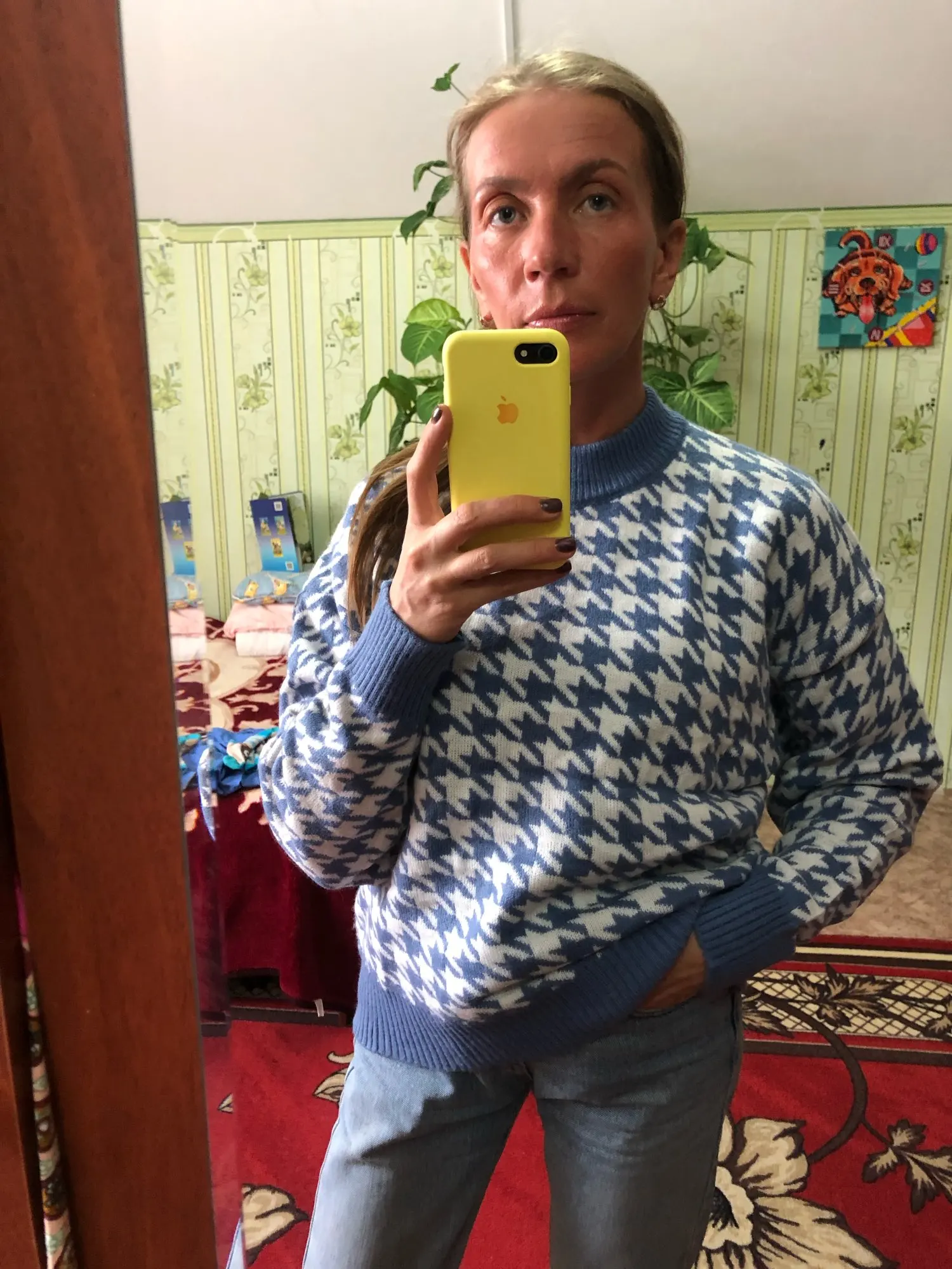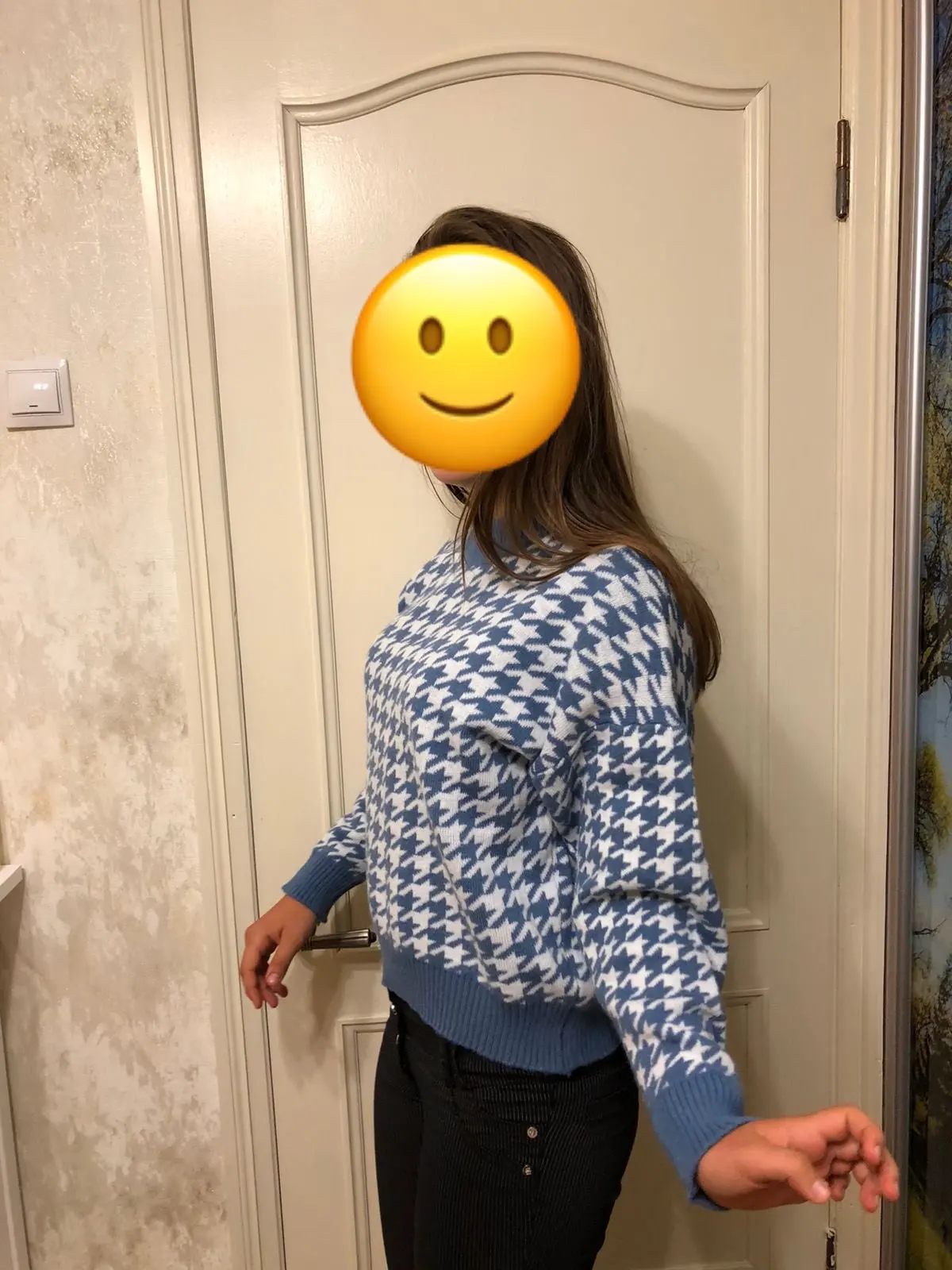 От фото немного отличается свитер не белый с голубым,а белый с синим