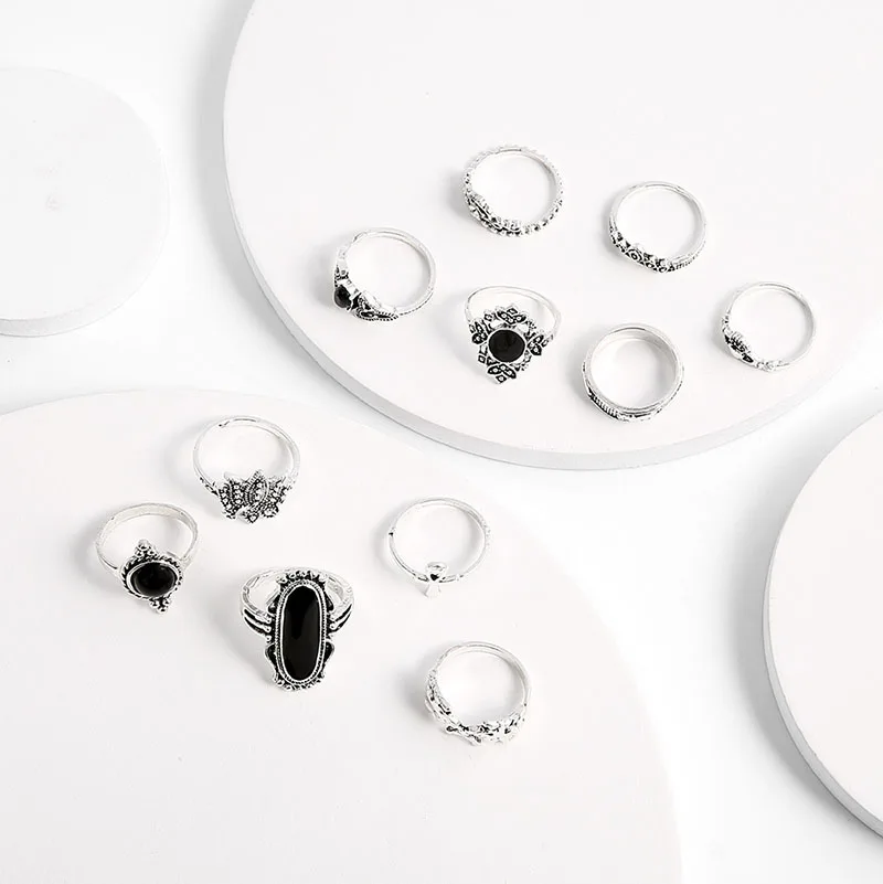11 шт.компл. винтажный античный серебряный цвет стразы набор колец ...