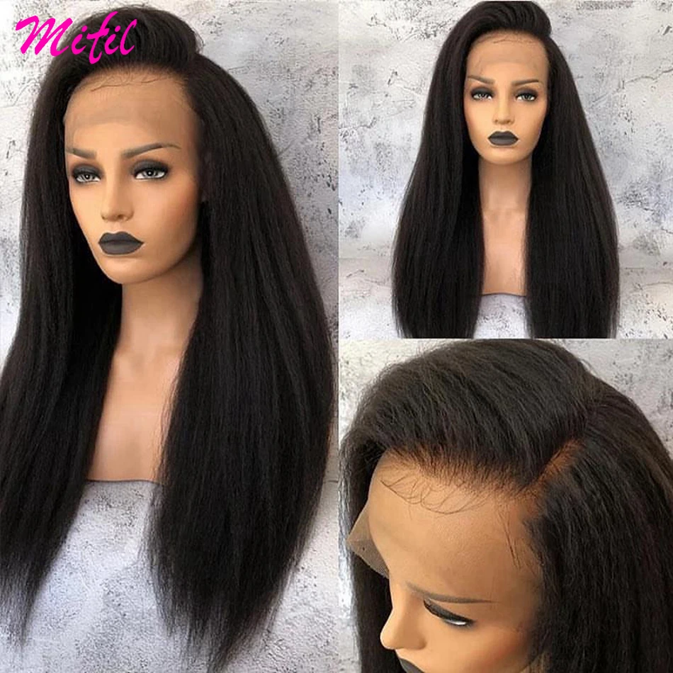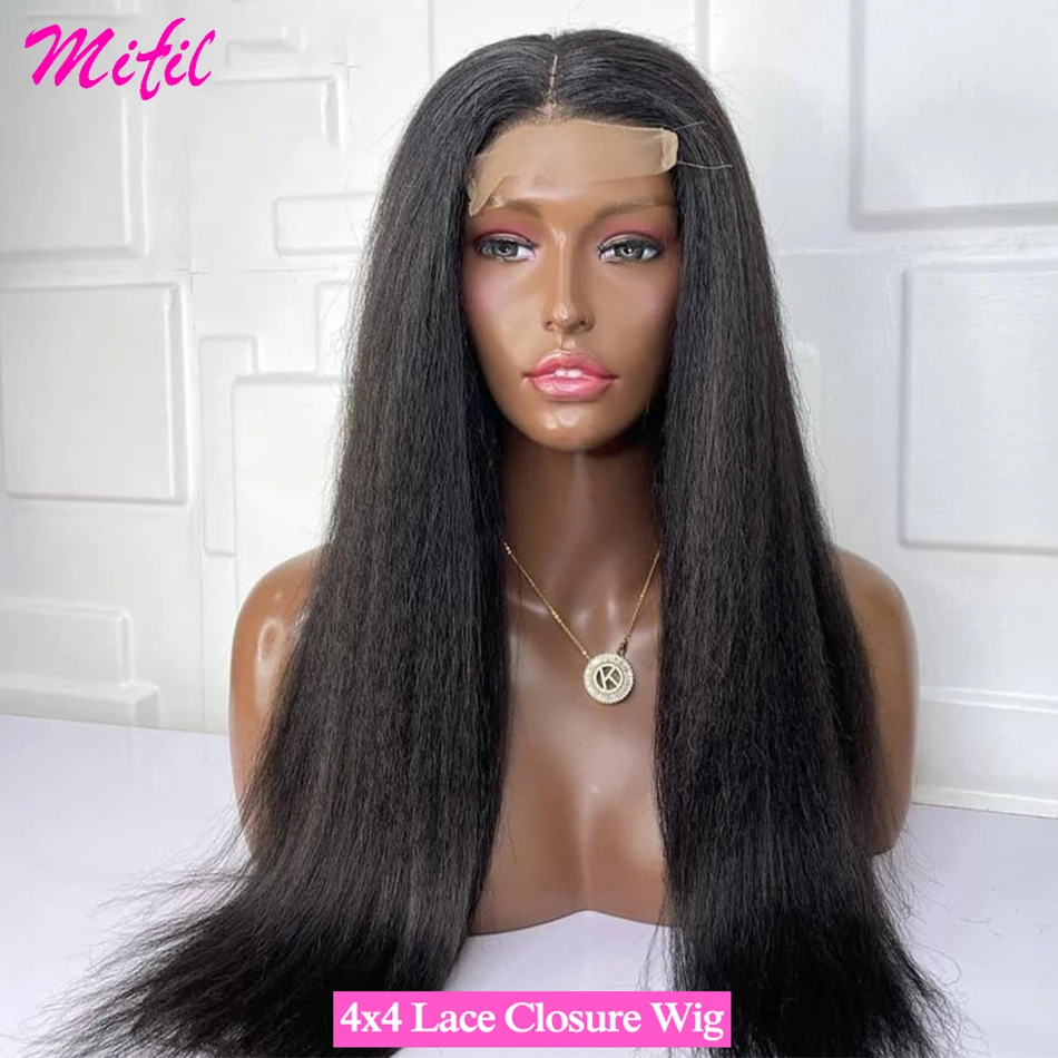 Wig DescriptionKinky Straight Yaki Straight Lace Front Wig,4x4 Lace Closure Wig
