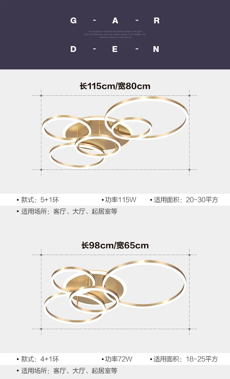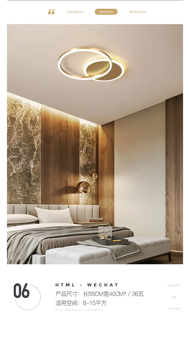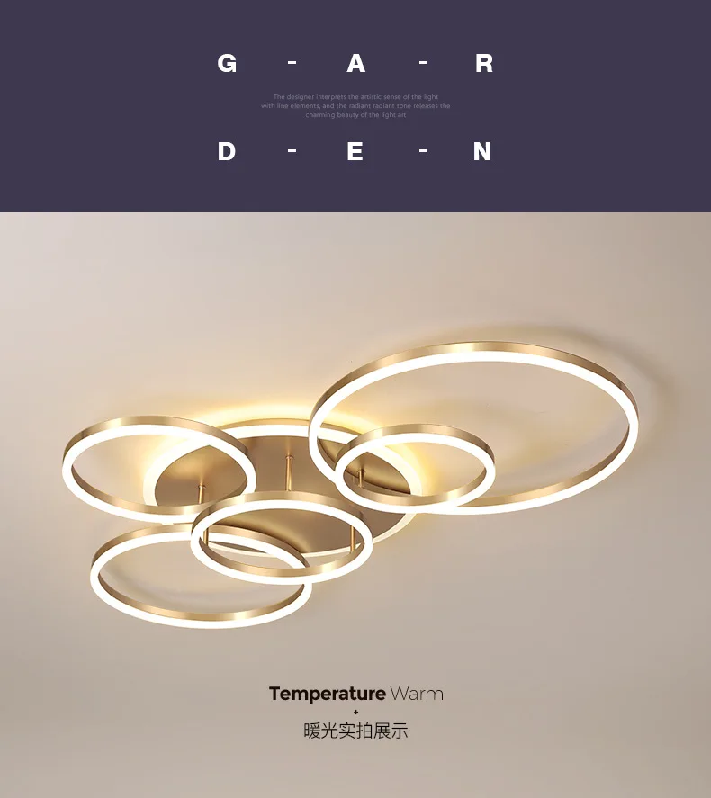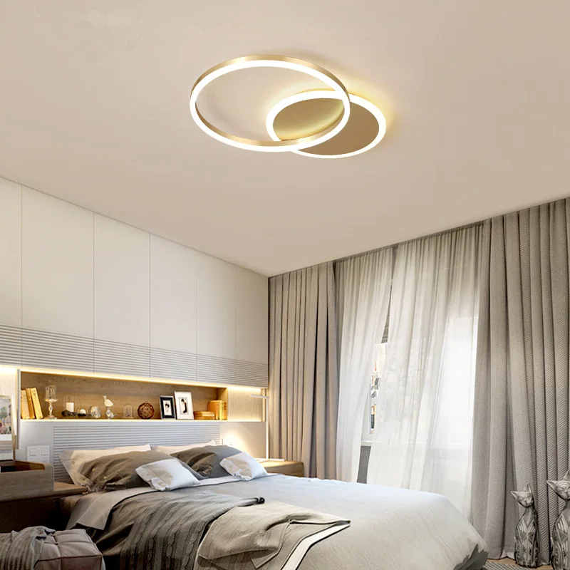 Потолочные светильники для гостиной, простые современные акриловые потолочные светильники с золотым кольцом, 220 В