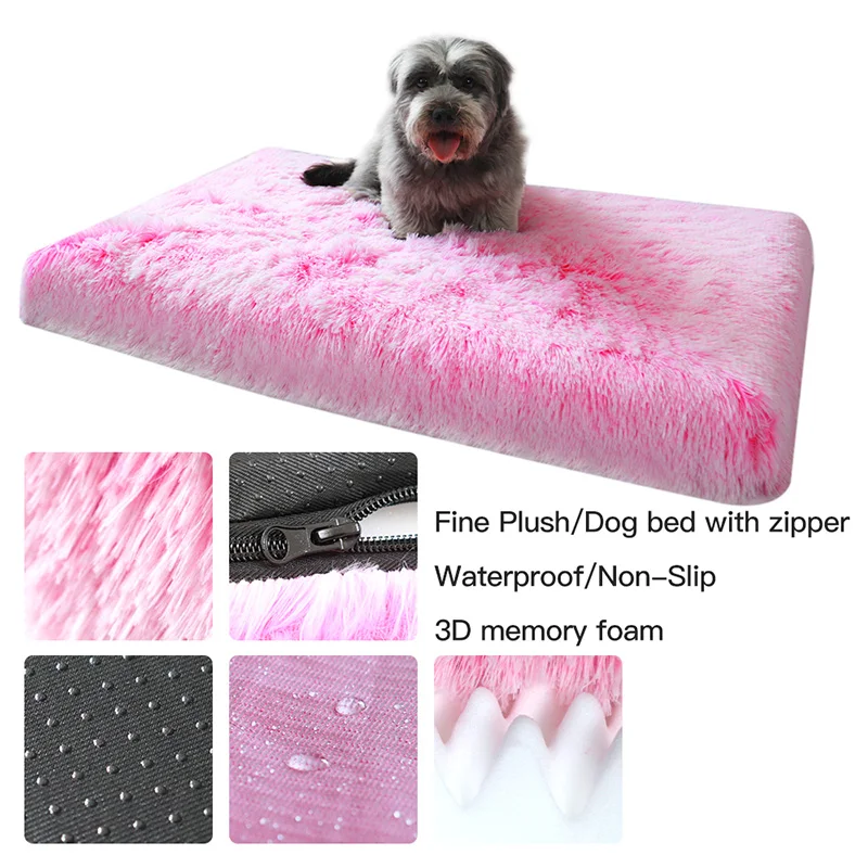 Роскошная кровать для собаки, теплый квадратный длинный плюшевый мягкий коврик, домик для маленьких, средних и больших питомцев с молнией, зимний теплый коврик для сна