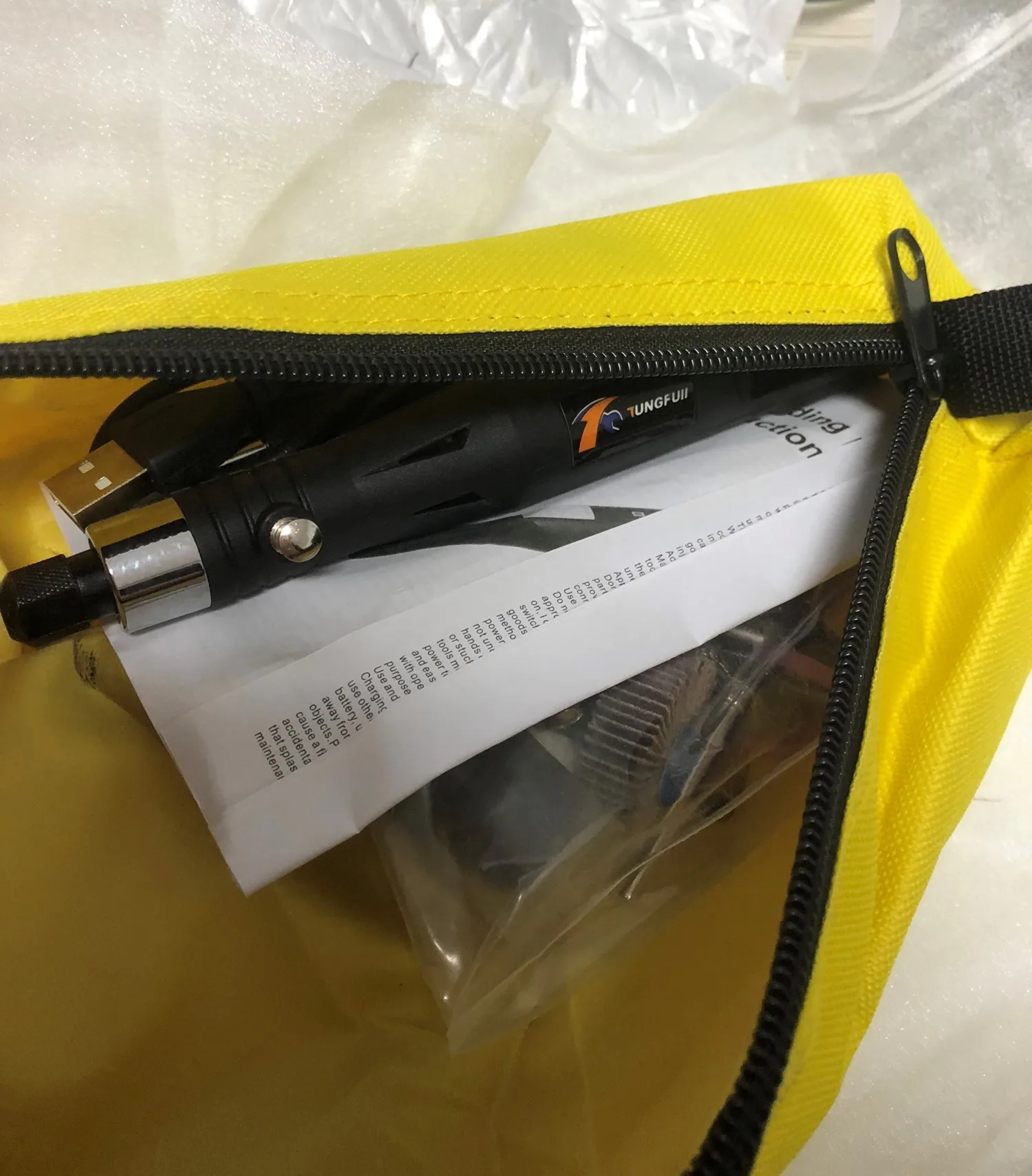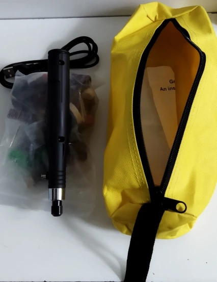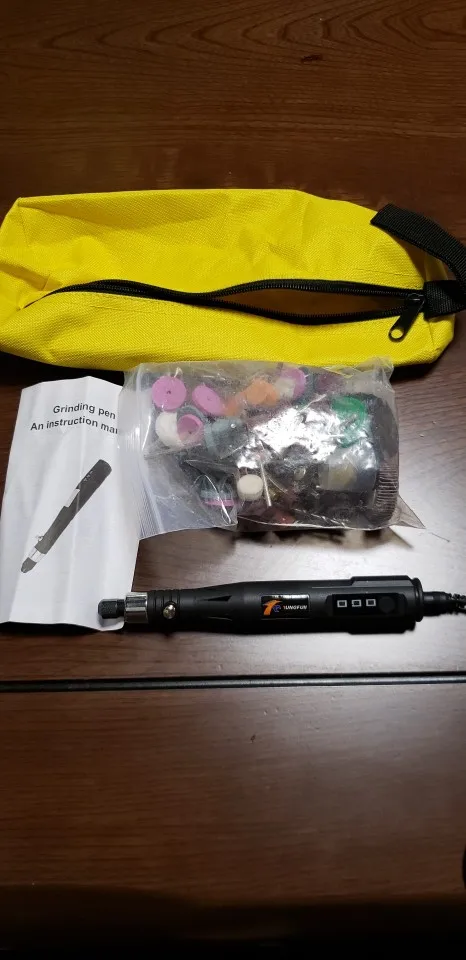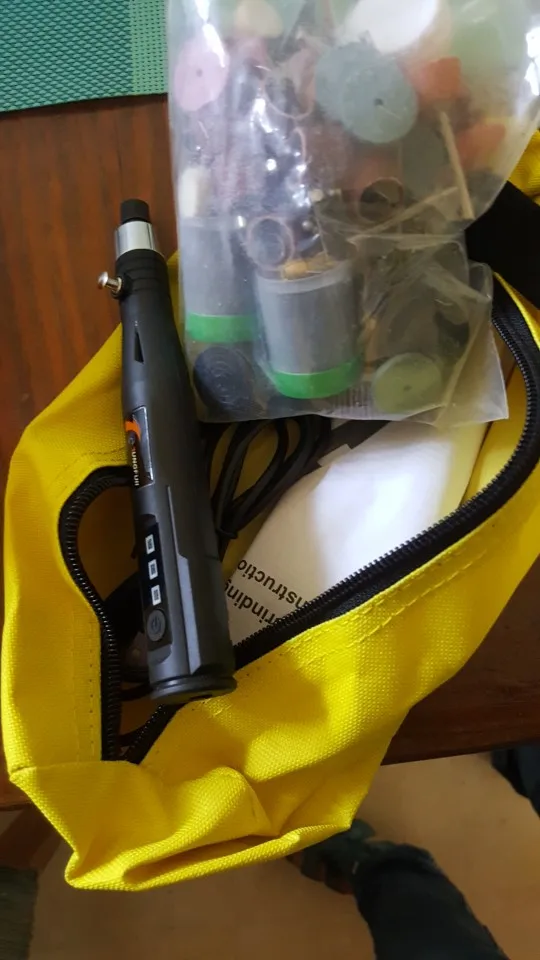Выглядит хорошо, как описано! Желтый мешок достаточно большой для большого количества дополнительных вещей! Мощность ручки-это то, что вы можете ожидать за эту цену, и она достаточно мощная, чтобы сделать то, что я хочу, чтобы это сделать; Резьба и изготовление на камнях.