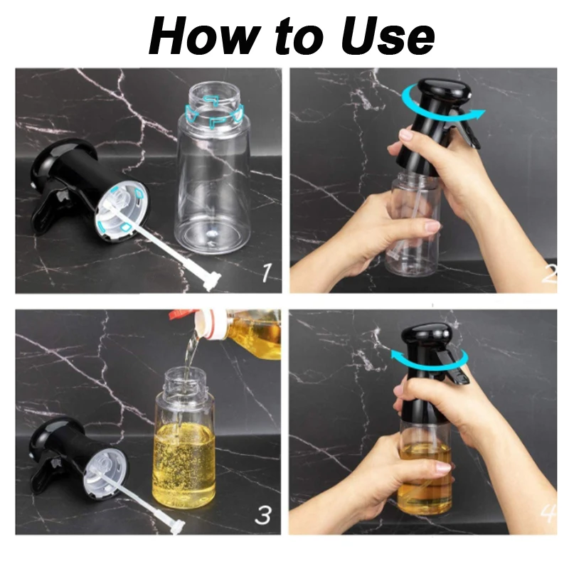 5. Сделать Спрей равномерно, удобно для гриля, приготовления, салата, выпечки, жарки, гриля, без использования кисти.
