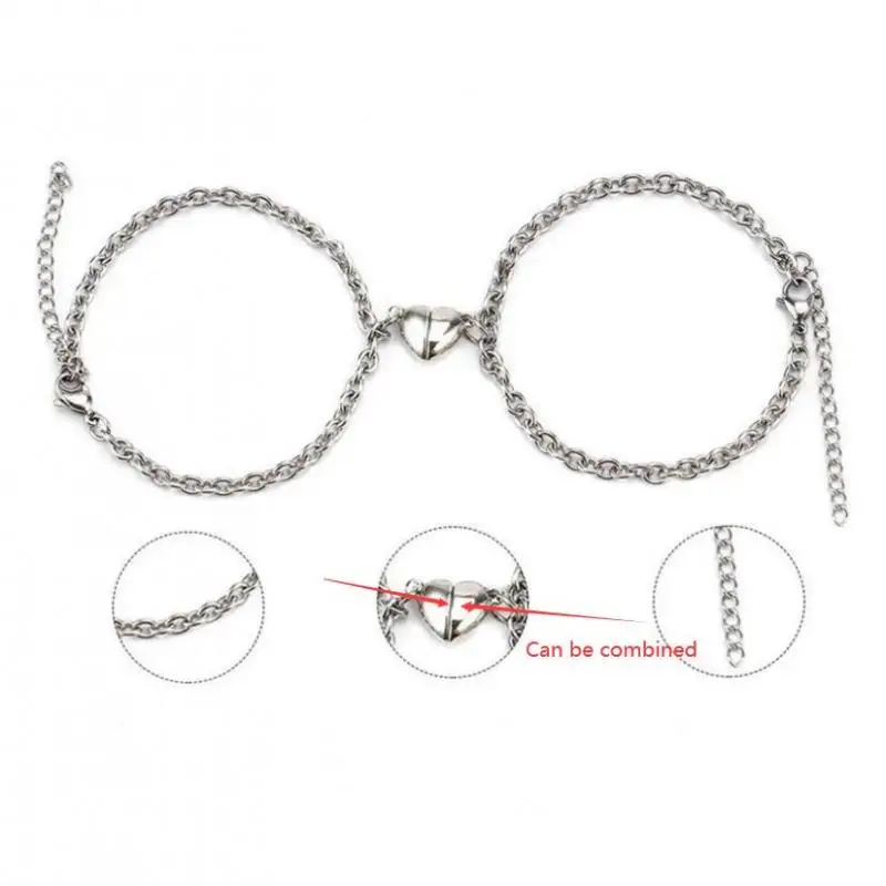 На 100% абсолютно новый качества и высокое качествоСтиль: мода, творчество, панк, романтика, очарованиеМатериал: высококачественный сплавЦвет: серебристый (цвет изображения)Размер браслета: регулируемая удлинительная цепьУпаковка продукта: 2 шт./комплект (отдельно упаковано в пластиковый пакет)Подходящий Пол: унисекс, лучшее ювелирное изделие для парСлучаи ношения: вечерние, танцевальные, уличные, для отдыха, фестивальные, повседневныеПримечание: 1. Из-за ручного измерения размер может немного отличаться.2. Креативный дизайн, магнит в форме сердца может быть объединен.3. Если у вас есть какие-либо вопросы о заказе, пожалуйста, свяжитесь со службой поддержки клиентов магазина вовремя, чтобы получить отзывы.