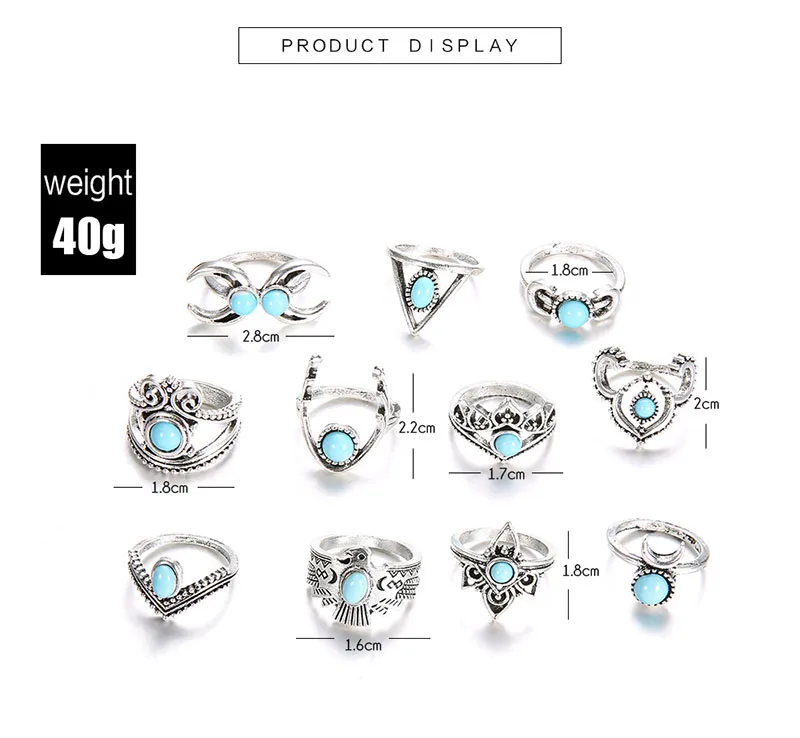 Кольца для девочек, набор синих колец, бижутерия в богемном стиле, аксессуары для женщин