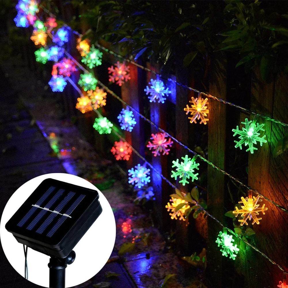 Солнечный свет огни 10 м 50 светодиодный Снежинка Водонепроницаемый Рождество СВЕТОДИОДНАЯ Гирлянда для дома открытый сад для отдыха и вечеринок Патио Декор