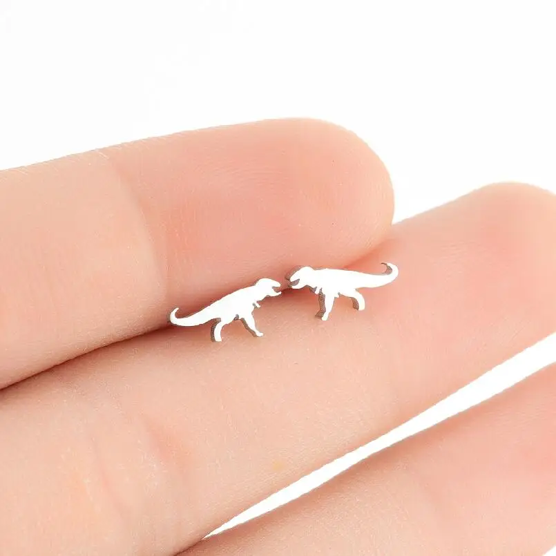 Миниатюрные серьги в виде динозавра из нержавеющей стали, серьги-гвоздики в форме древнего животного, очаровательные бронки, позолоченные розы, поп, ювелирные аксессуары