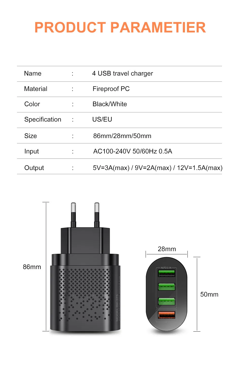 Function 5:4 Port USB 3A Travel USB Charger Adapter