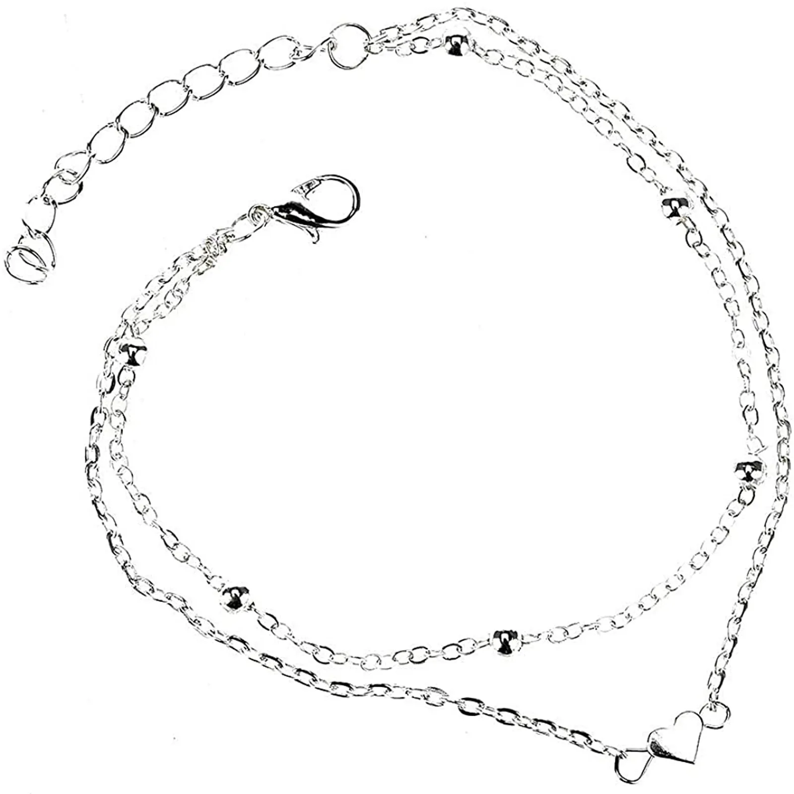 Двухслойный Женский Регулируемый браслет на лодыжку из нержавеющей ...