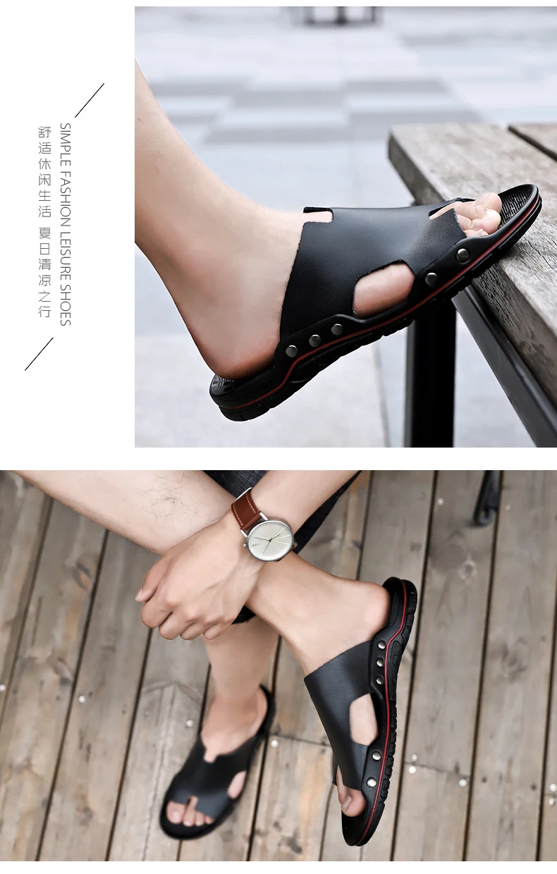 Мужские уличные сандалии из натуральной кожи, повседневные шлепанцы, пляжные, 38-48 размеров, 38 48, лето, 2021