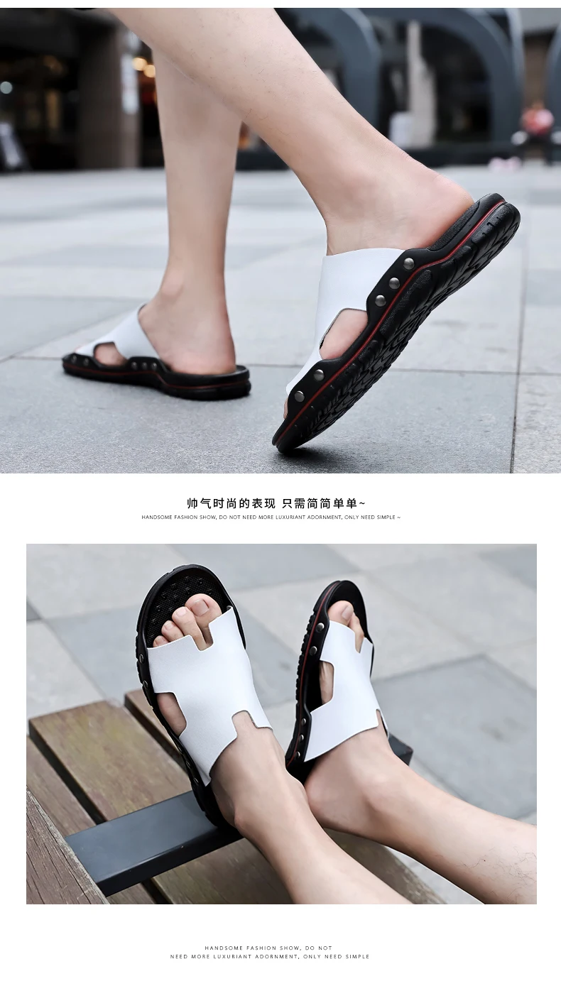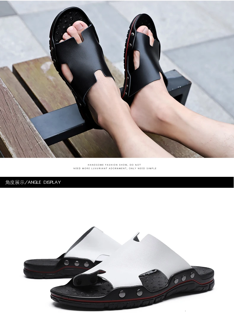 Мужские Нескользящие сандалии из натуральной кожи, размеры 39-45