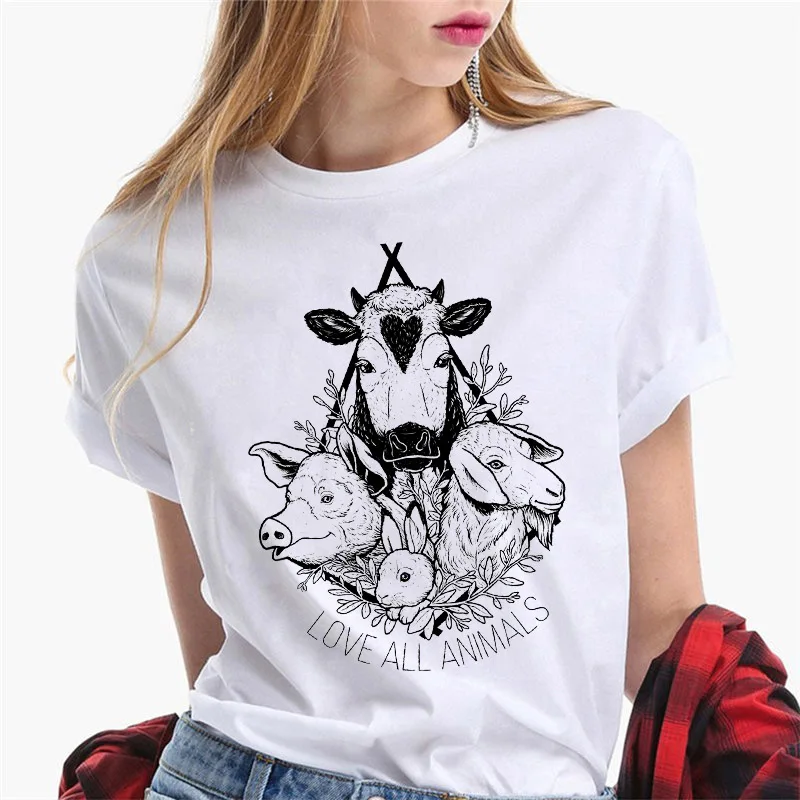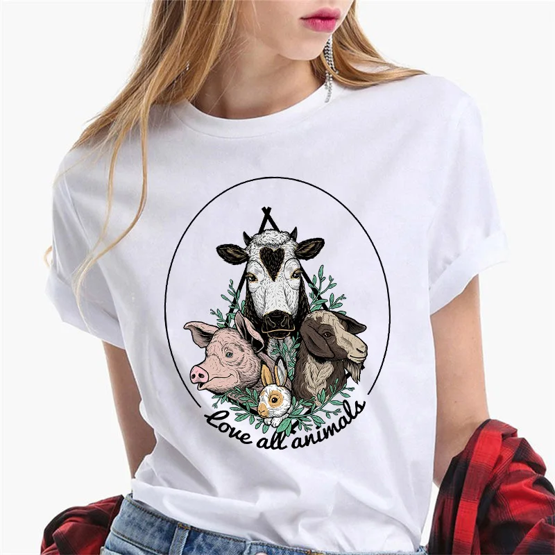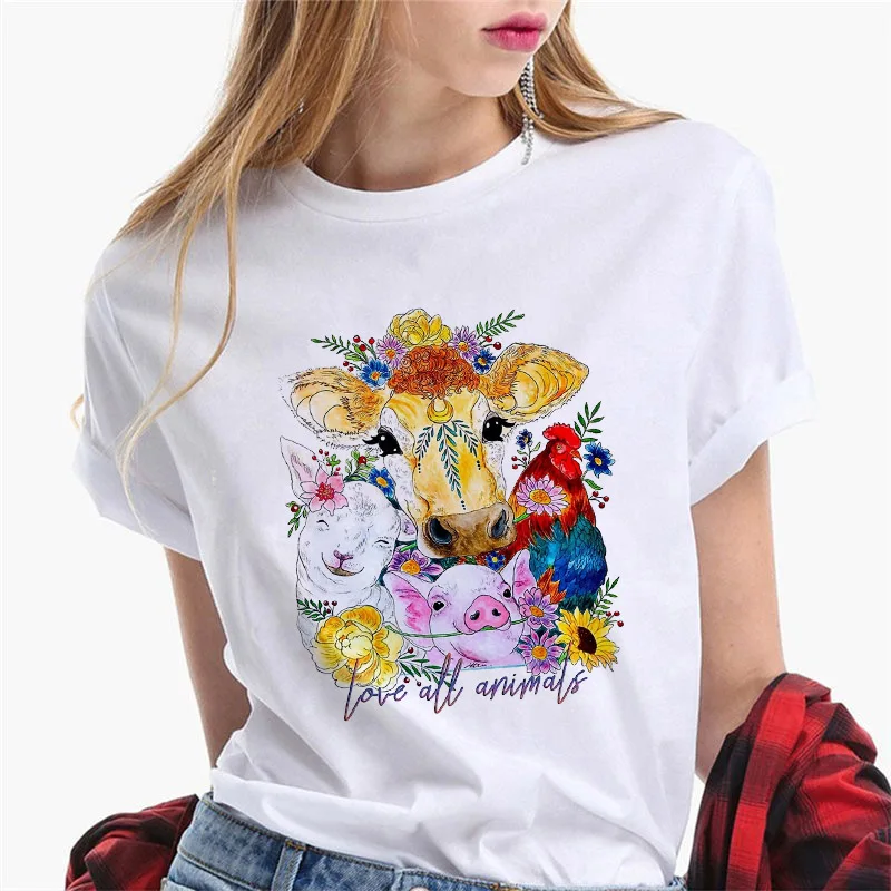 Летняя футболка 2021, футболка в стиле Харадзюку с изображением коровы и животных, женские футболки с круглым вырезом, белые женские повседневные топы с коротким рукавом