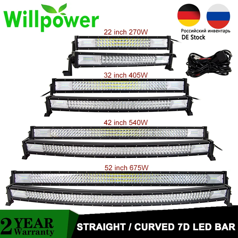 Willpower 22 32 42 50 52 ''дюймовый прямой изогнутый светодиодный светильник, комбинированный светодиодный рабочий светильник для внедорожного вождения, противотуманная фара для грузовика 4x4 ATV UTV 12V 24V
