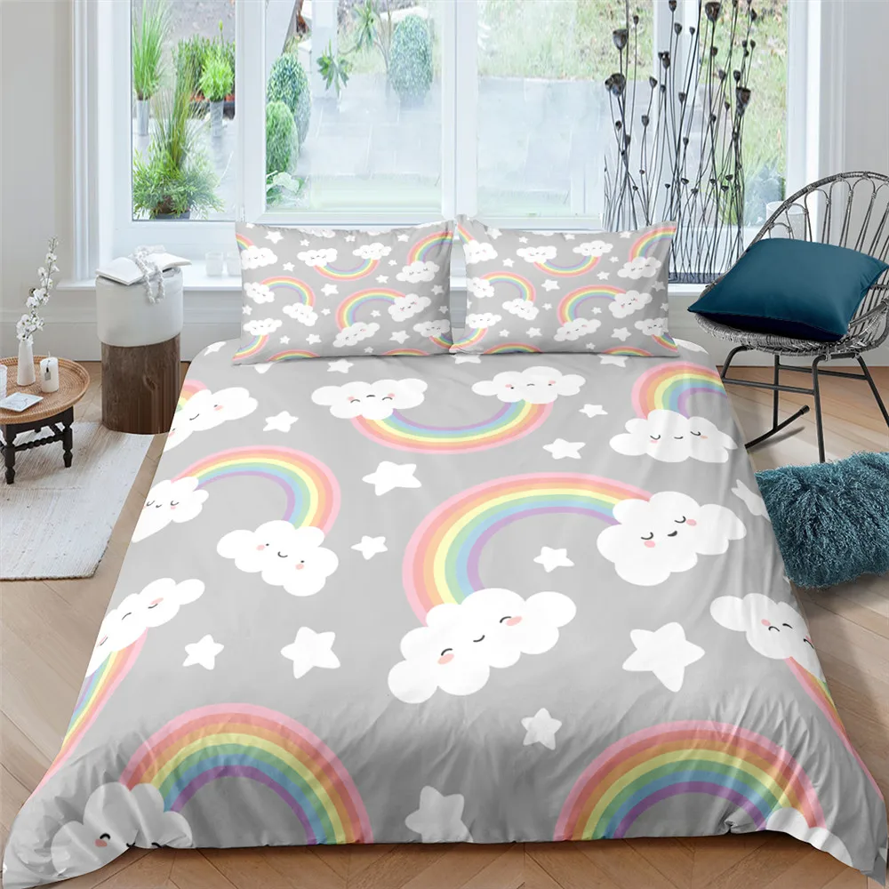 Мультфильм Постельное белье радуги облака с Стёганое одеяло пододеяльник набор Подушка Чехол для маленькой девочки подарки King Queen Twin Стёганое одеяло крышки