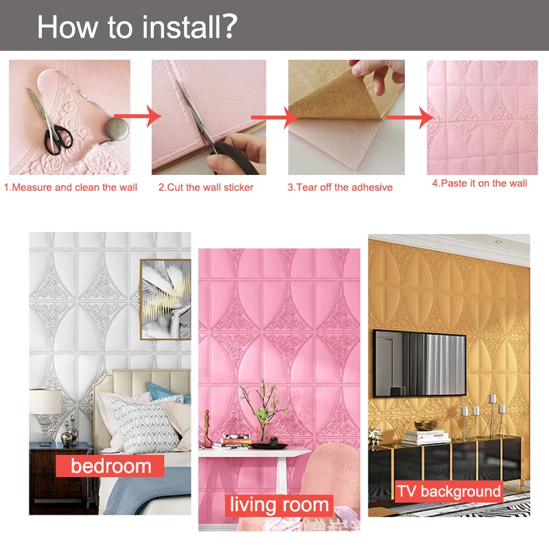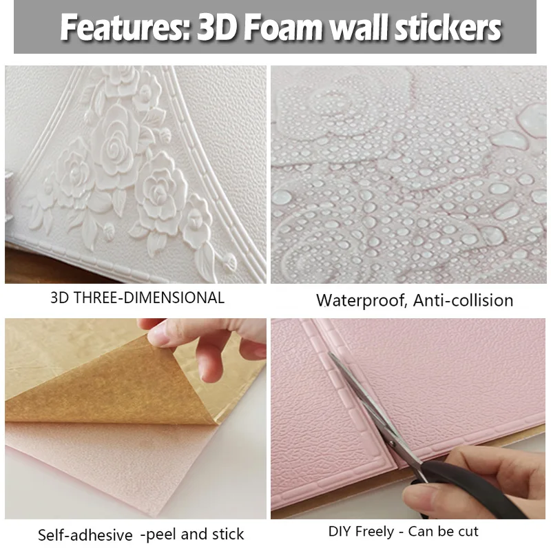 Мягкая ПЭ пена-по сравнению с обычными обоями, есть лучший эффект шумоподавления, более эластичные, водонепроницаемые, влажные и легко чистятся. Трехмерное украшение из мягкой пены, предотвращение столкновения детей, забота о вашей семье.