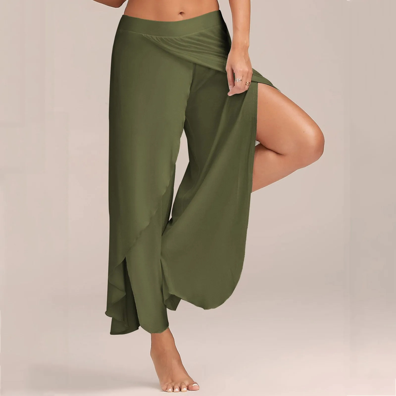 Брюки с широкими штанинами Для женщин Капри однотонные свободные шаровары Фитнес танцевальная одежда Разделение брюки размера плюс штаны эластичные Pantalon Pour Femme