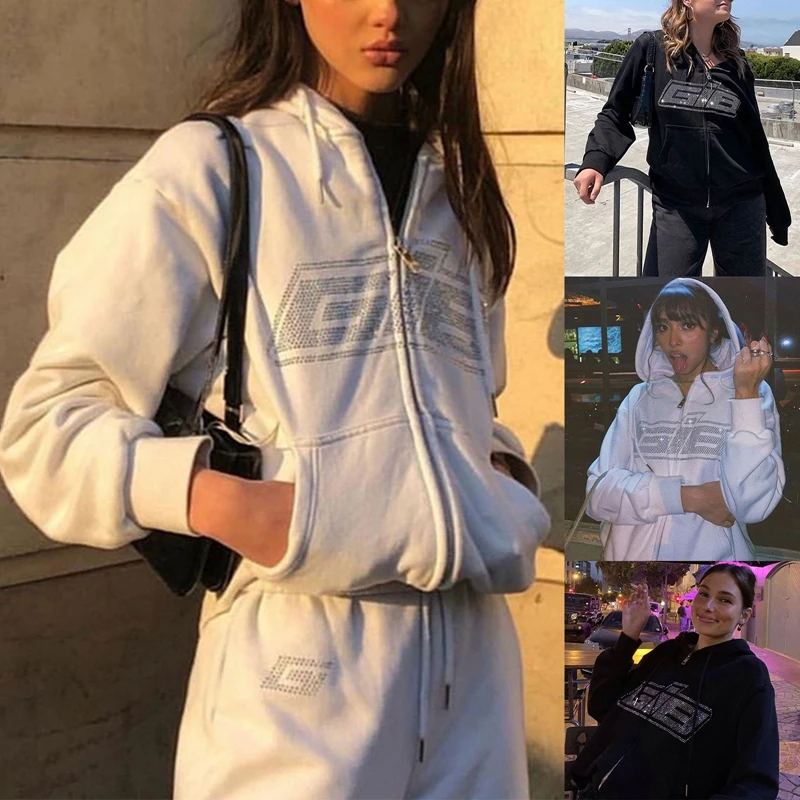 Женская куртка с капюшоном свитер с круглым вырезом и застежка-молния с плавным ходом, буквы, стразы украшения комплект весенней одежды