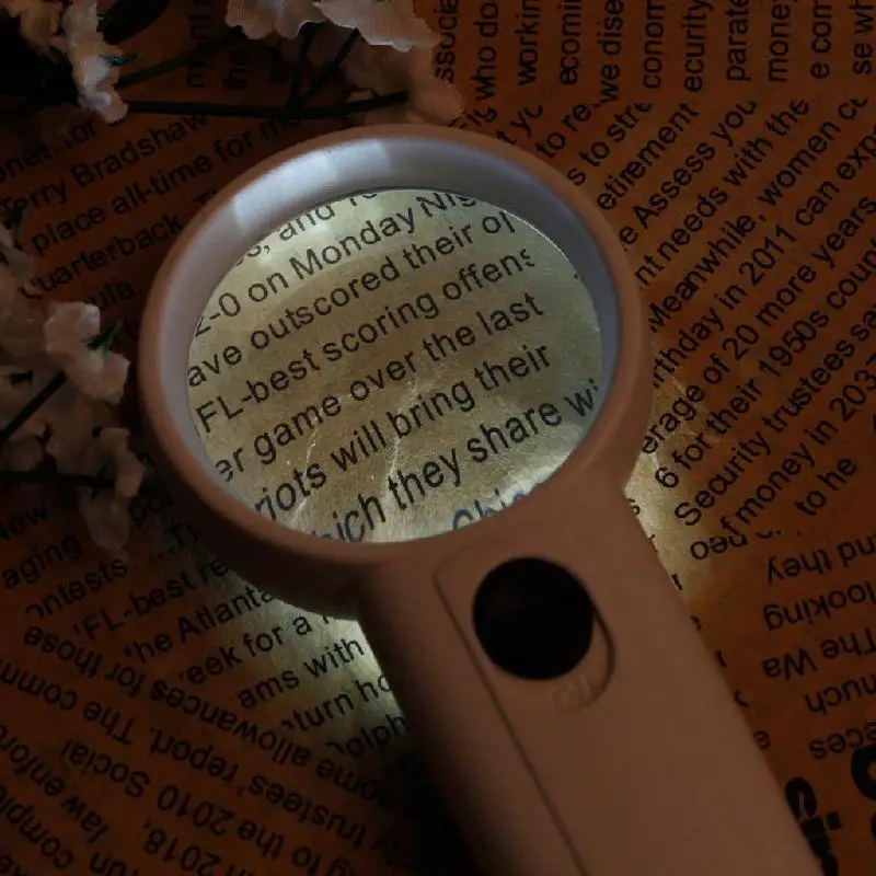 Ручная стеклянная лупа диаметром 50 мм, с 5-кратным увеличением, белая светодиодсветодиодный Лупа