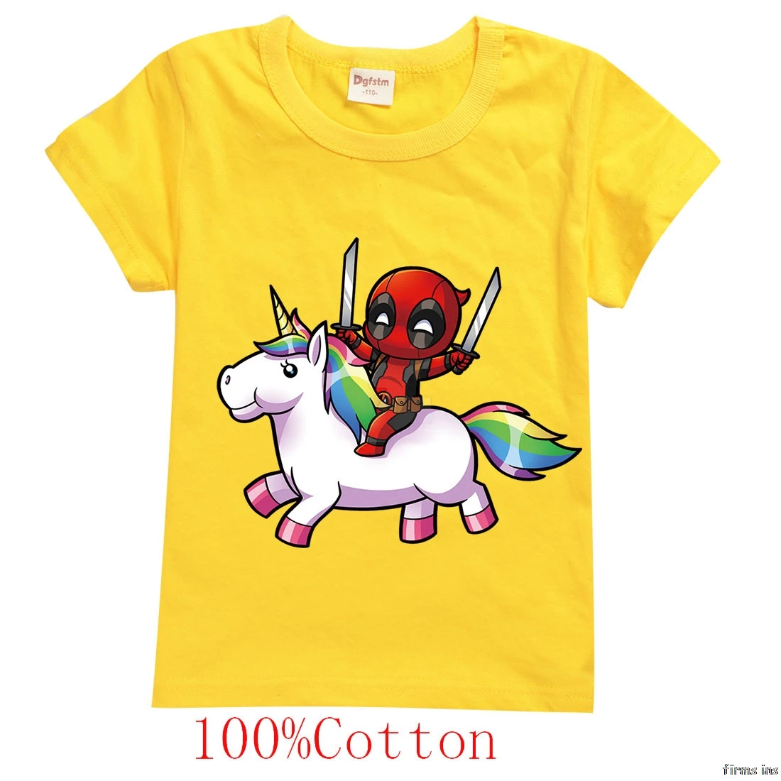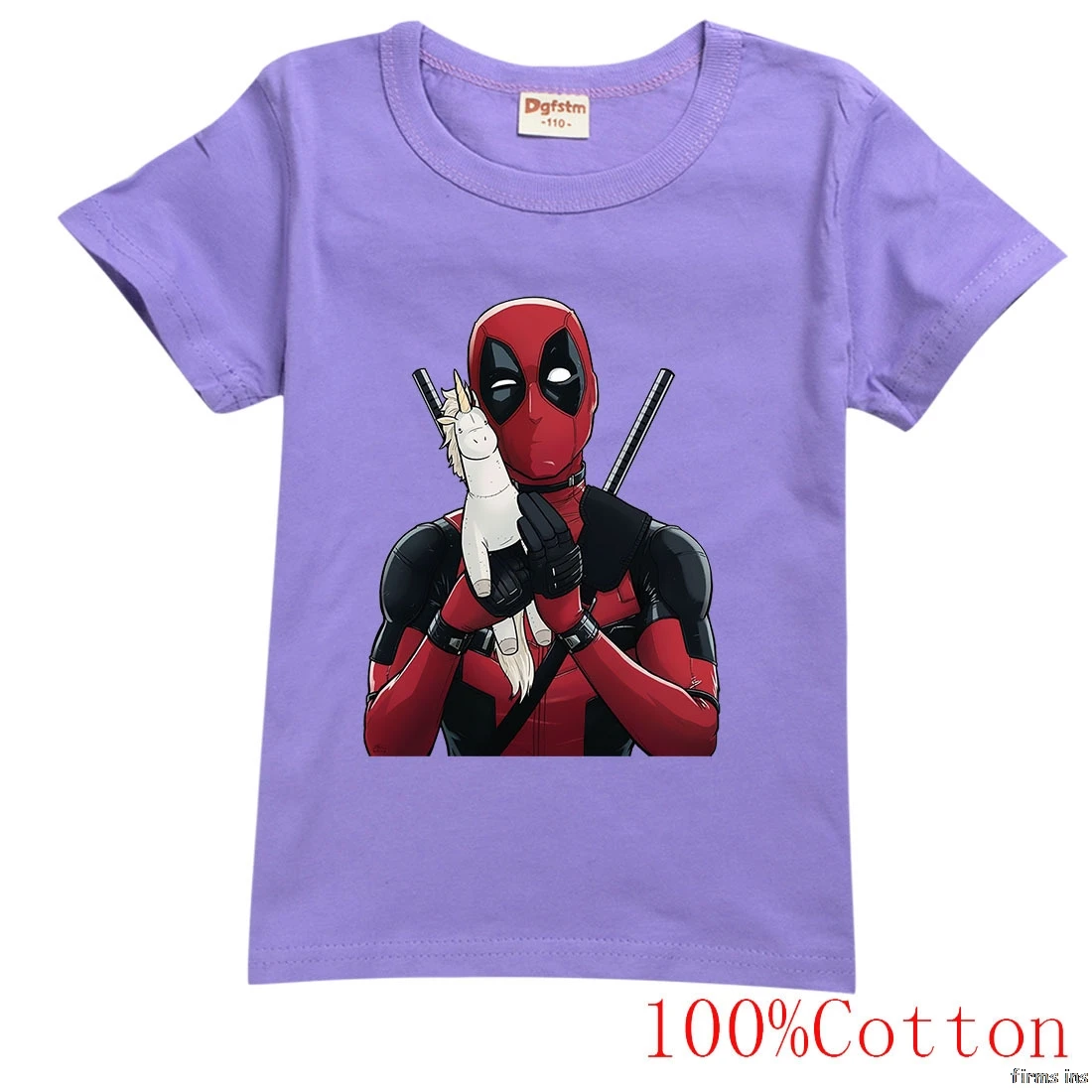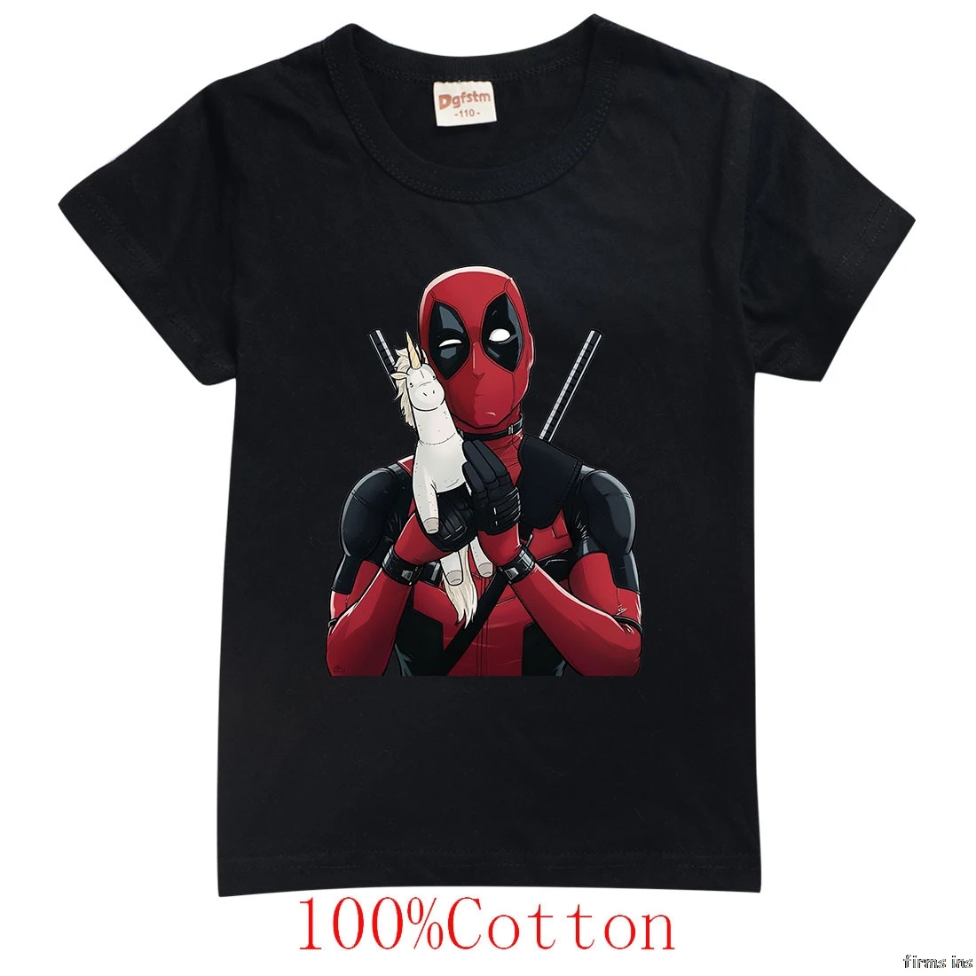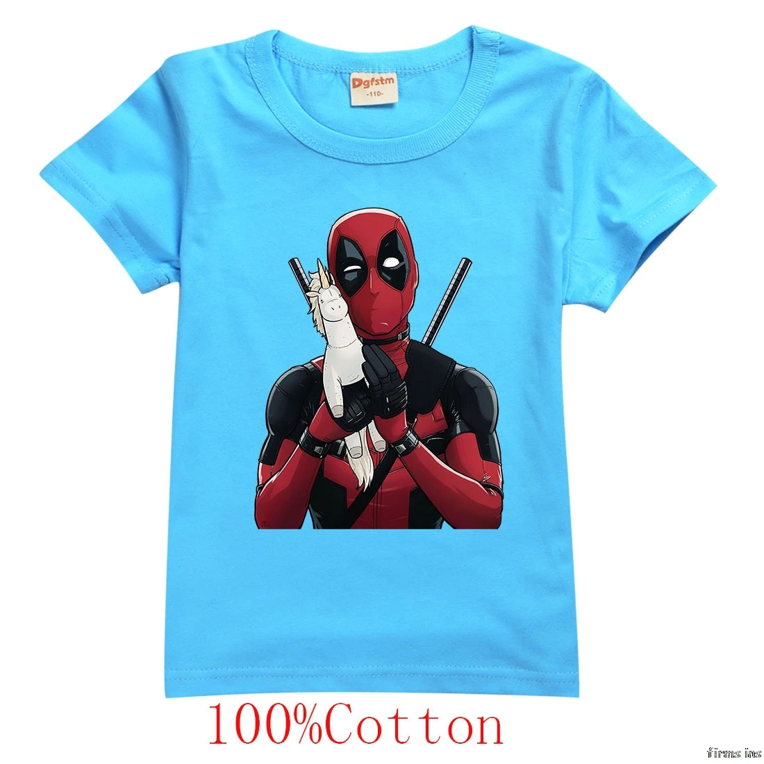Летняя футболка с короткими рукавами футболки для мальчиков старшего возраста, Детская фильма Дэдпул; Рубашки ярких Цвет топы с принтом, футболки для девочек на От 2 до 15 лет, для детей, одежда
