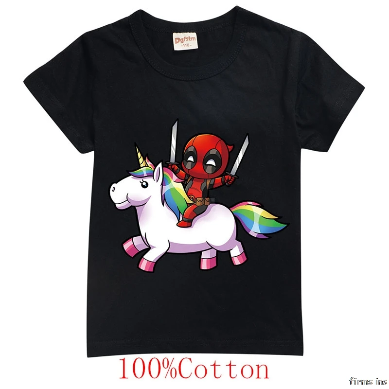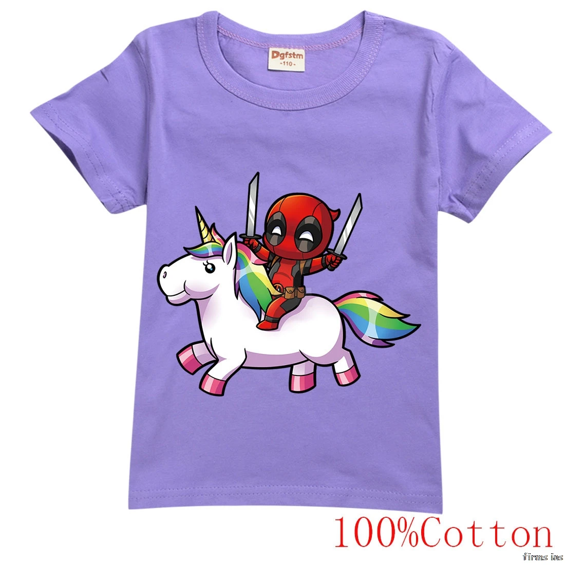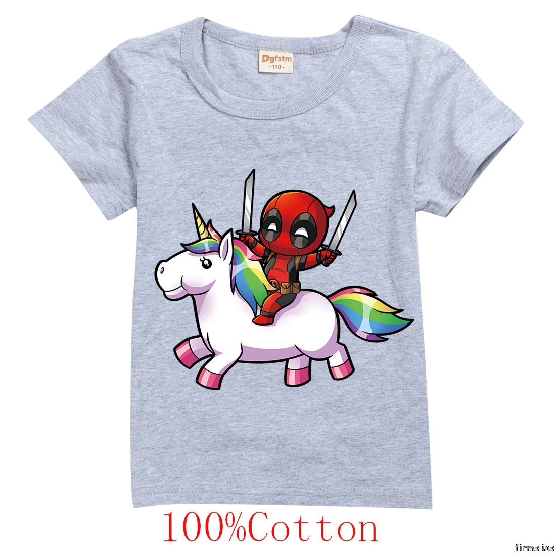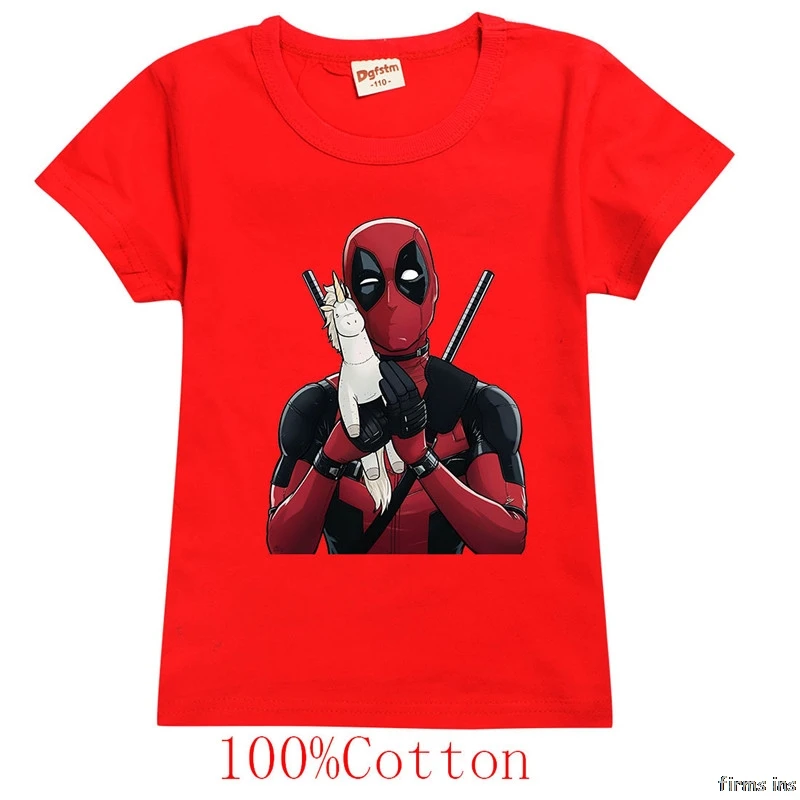 Летняя футболка с короткими рукавами футболки для мальчиков старшего возраста, Детская фильма Дэдпул; Рубашки ярких Цвет топы с принтом, футболки для девочек на От 2 до 15 лет, для детей, одежда