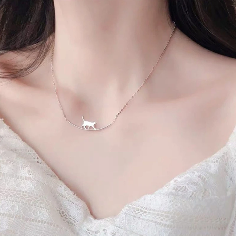Изогнутое ожерелье с котом из серебра 925 пробы, простая индивидуал...