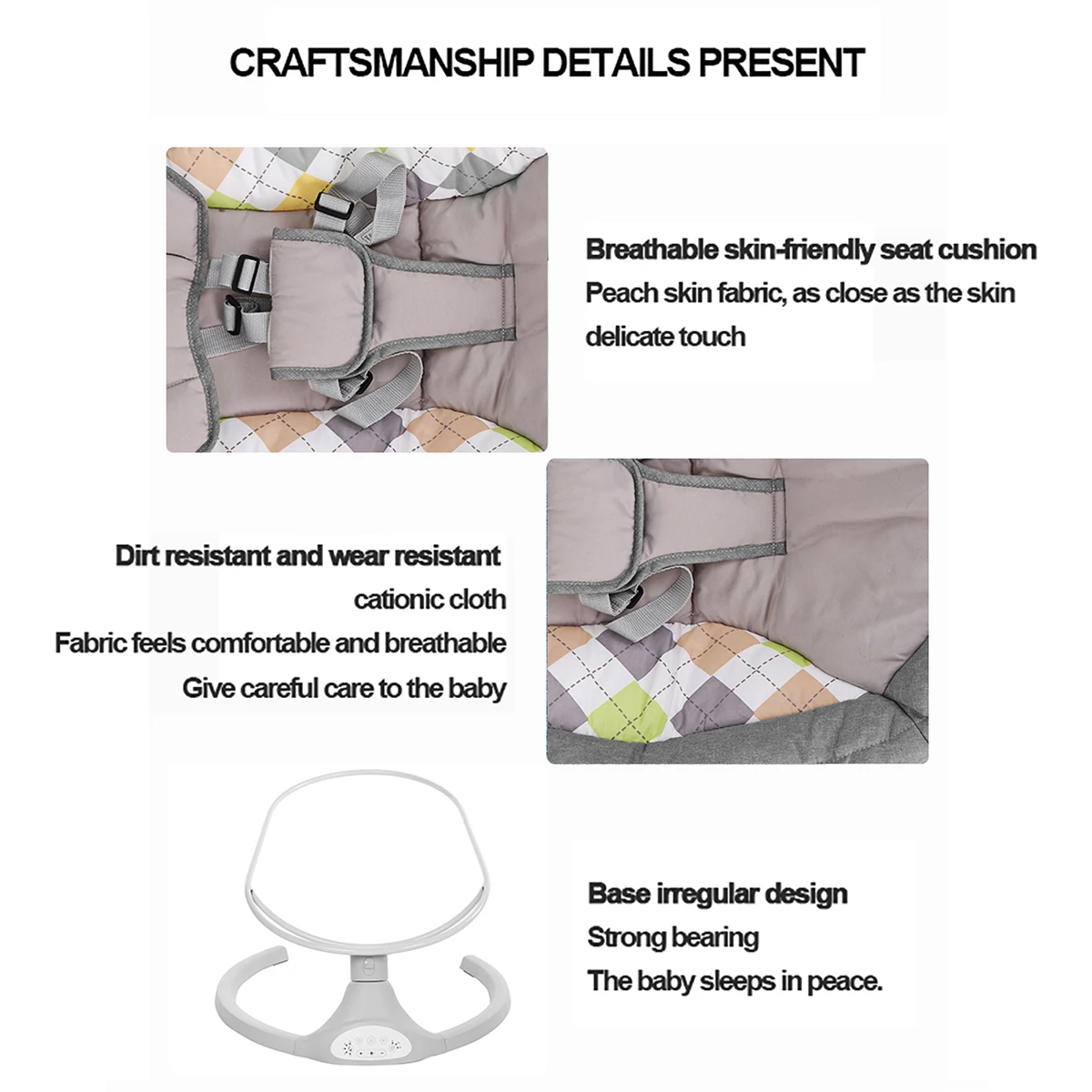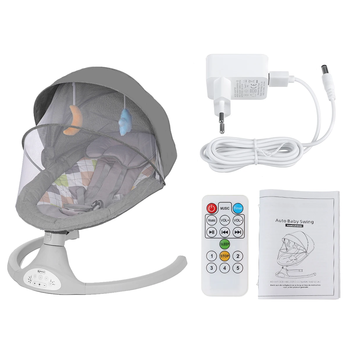 Посылка включает в себя:1 х Электрический детский кресло-качалка1 х москитная сетка2 x игрушка1 х адаптер1 x ИнструкцияХарактеристики:Цвет: серый/синий/розовыйМатериал ткани: персиковая кожа, катионныйОсновной материал: стальная труба + пластикРазмер изделия: 65*65*71,5 см/25,6*25,6*28,1 дюйма (Д * Ш * В)Чистая Вес: 3,5 кгБрутто Вес: 4,7 кгПодходящий возраст: 0-12 месяцевМаксимальная грузоподъемность: 9 кгОсобенности:-Пять режимов угла поворота-Питание от адаптера 5 В-Пульт дистанционного управления-Фиксатор положения/защита ремня безопасности-Пожалуйста и мягкая музыка in-bulit-Соединение bluetooth для воспроизведения музыки-Разборная крышка сиденья, экологически чистая ткань-Доступно много цветов-Пятиточечный ремень безопасности безопаснее, чем трехточечный ремень безопасностиПримечание:1. Допускается погрешность в 1-2 см из-за ручного измерения. Пожалуйста, убедитесь, что вы не возражаете, прежде чем сделать ставку.2. Цвета могут отличаться, так как на дисплее разница, пожалуйста, поймите.