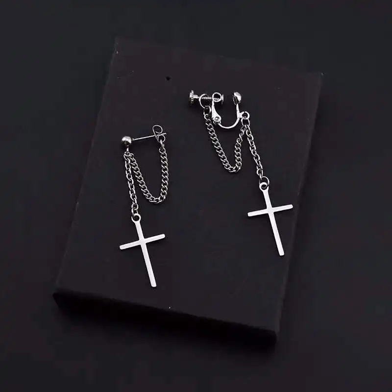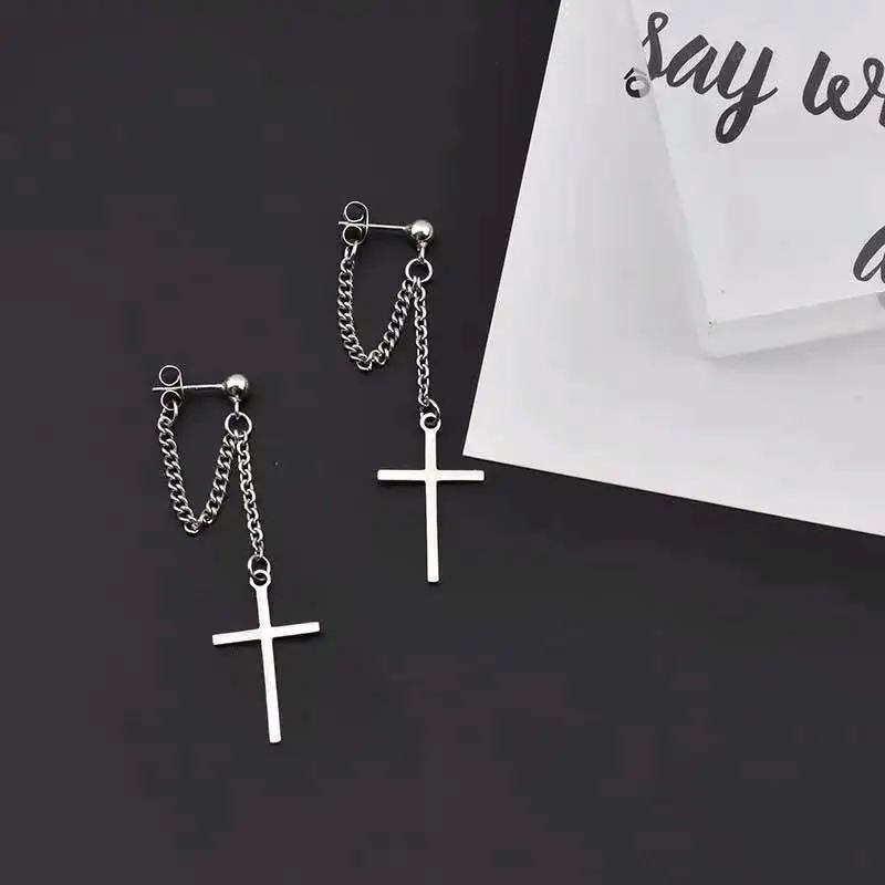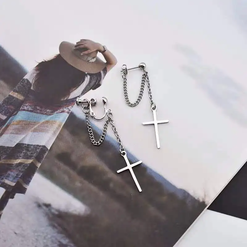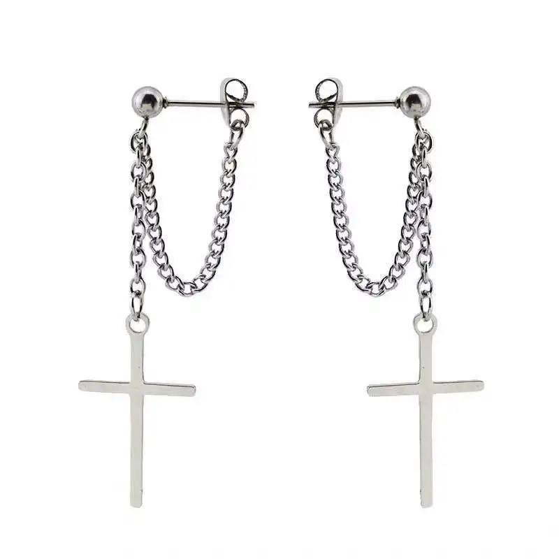 2021 г., модные необычные серьги в стиле панк из нержавеющей стали, винтажные массивные металлические серьги-цепочки с крестом для женщин, женские трендовые ювелирные изделия