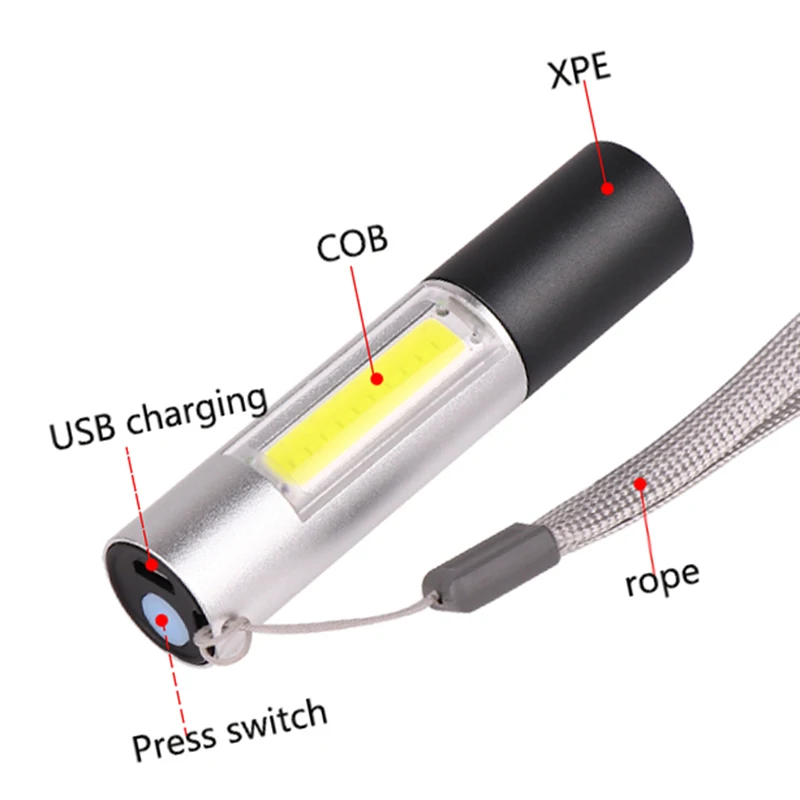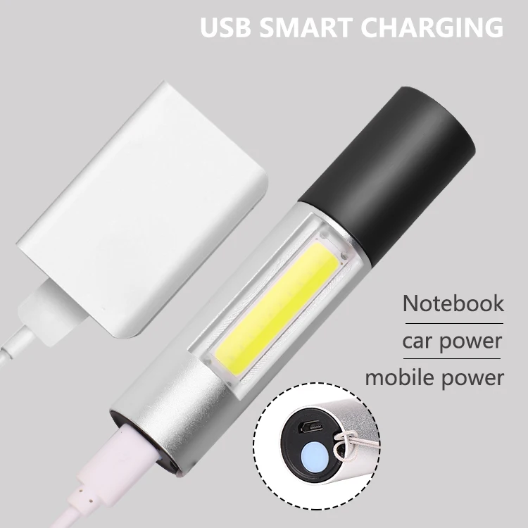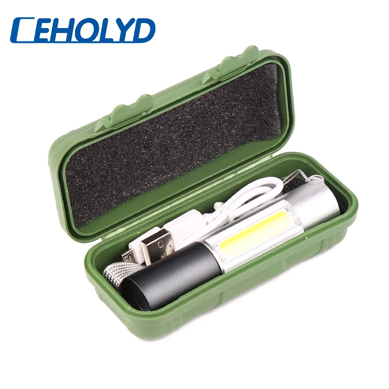 Миниатюрный светодиодный фонарик с зарядкой по USB, супер яркий водонепроницаемый портативный фонарь COB + XPE с 3 режимами, для кемпинга, велоспорта, ночного освещения