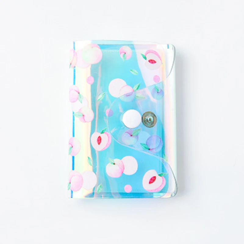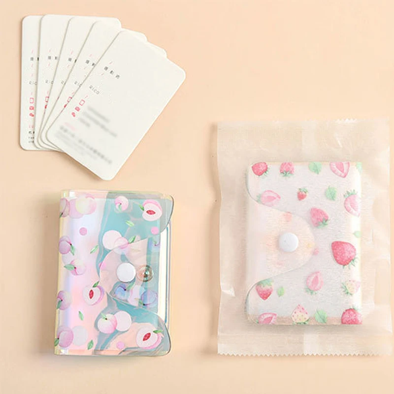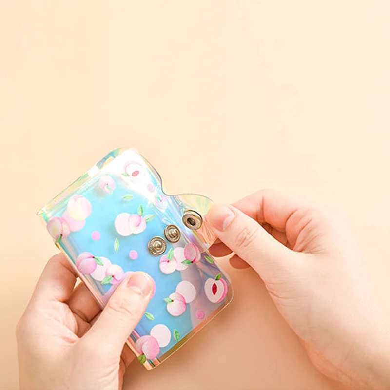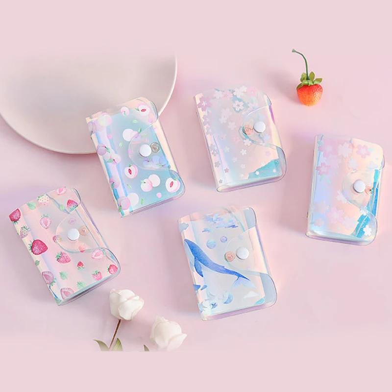 Милый держатель для карт с клубничным узором Сакура, комбинированные мягкие сумки для карт с лазерным эффектом, Женский Держатель для визиток для девочек, маленький подарок