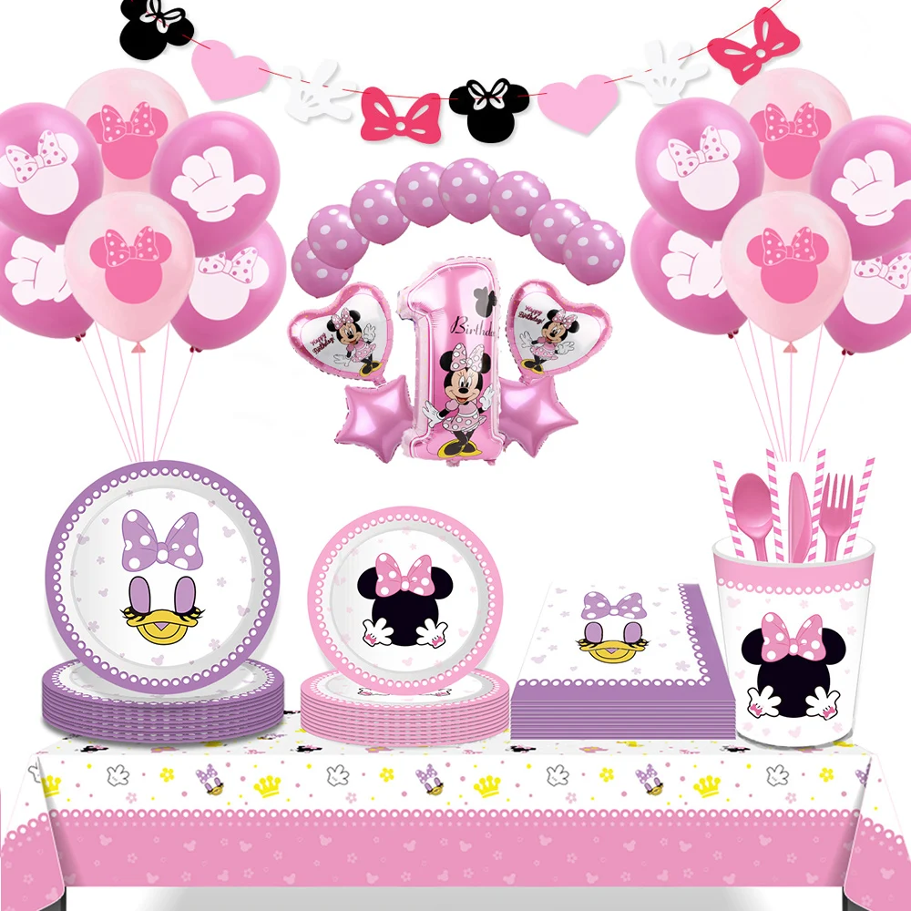 Disney тема Минни Мауса для маленьких девочек День рождения девочек кошка День рождения Декор на день рождения одноразовая посуда набор воздушных шариков
