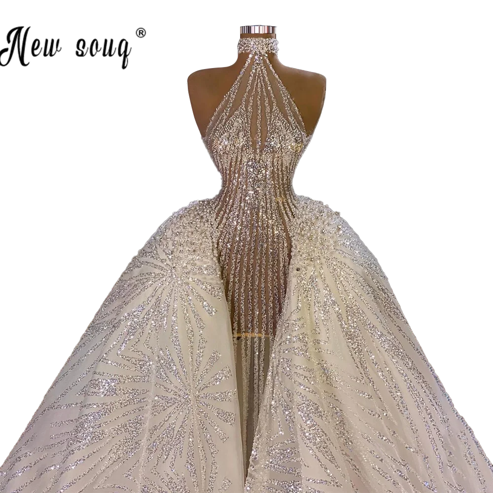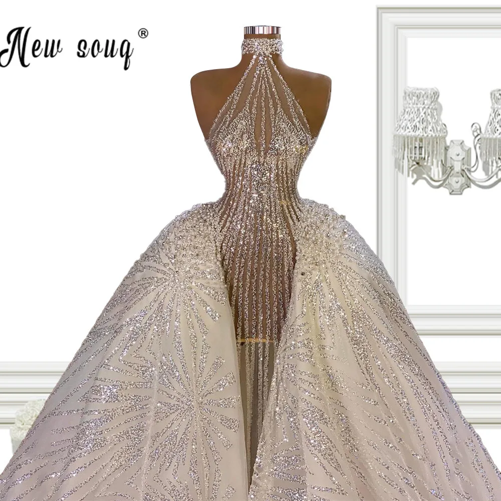 Роскошные Блестящие Свадебные платья со шлейфом русалки 2021 Vestido De Noiva Couture Дубай Свадебные платья для невесты