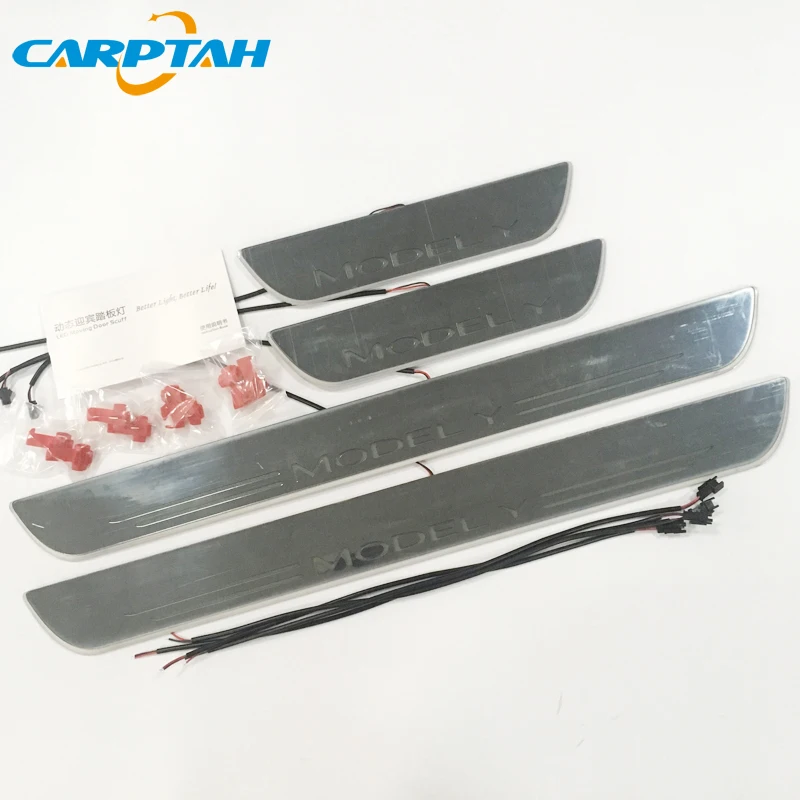 CARPTAH отделкой педаль автомобиля внешние Запчасти светодиодный порога Накладка путь динамический поток светильник для Tesla модели Y 2019 2020