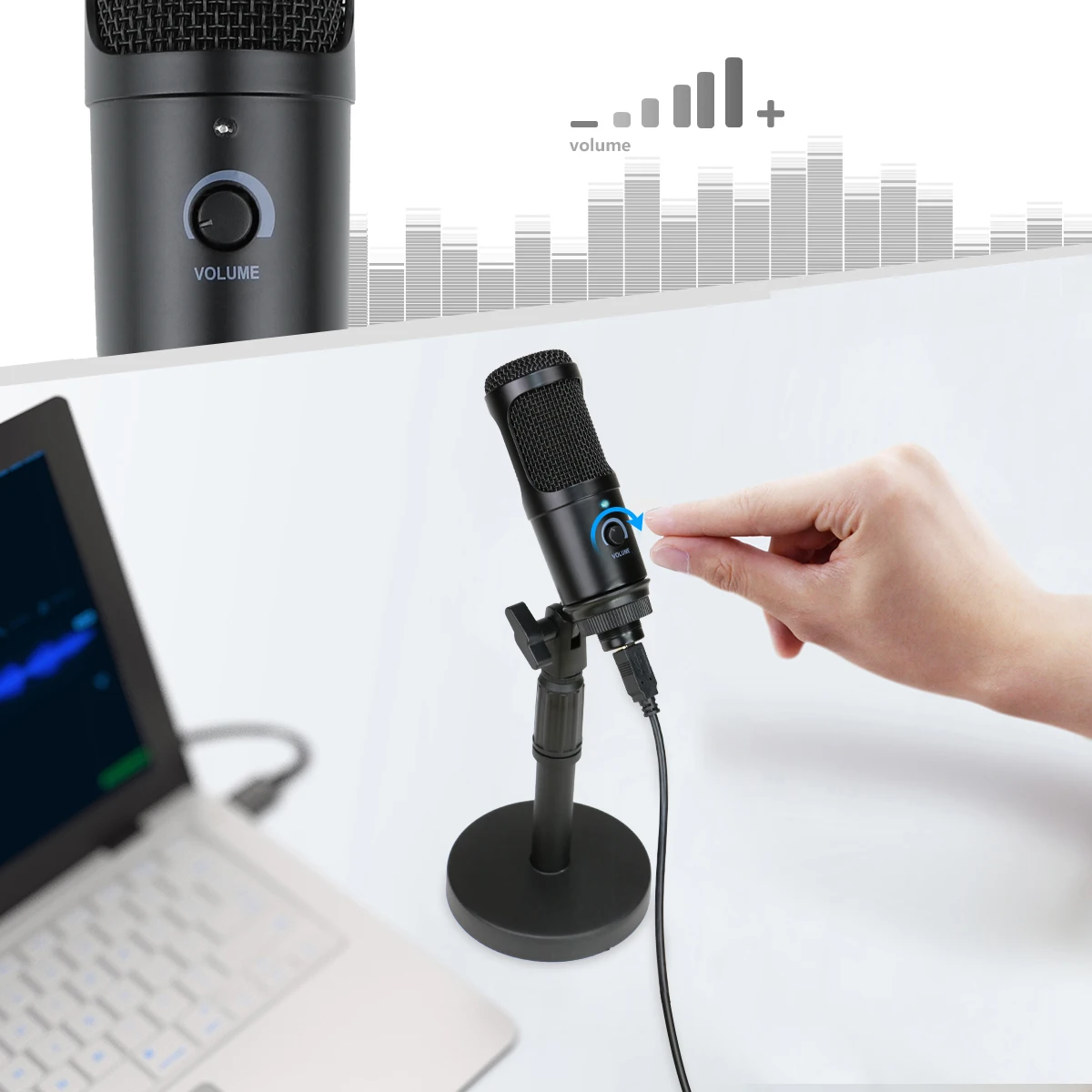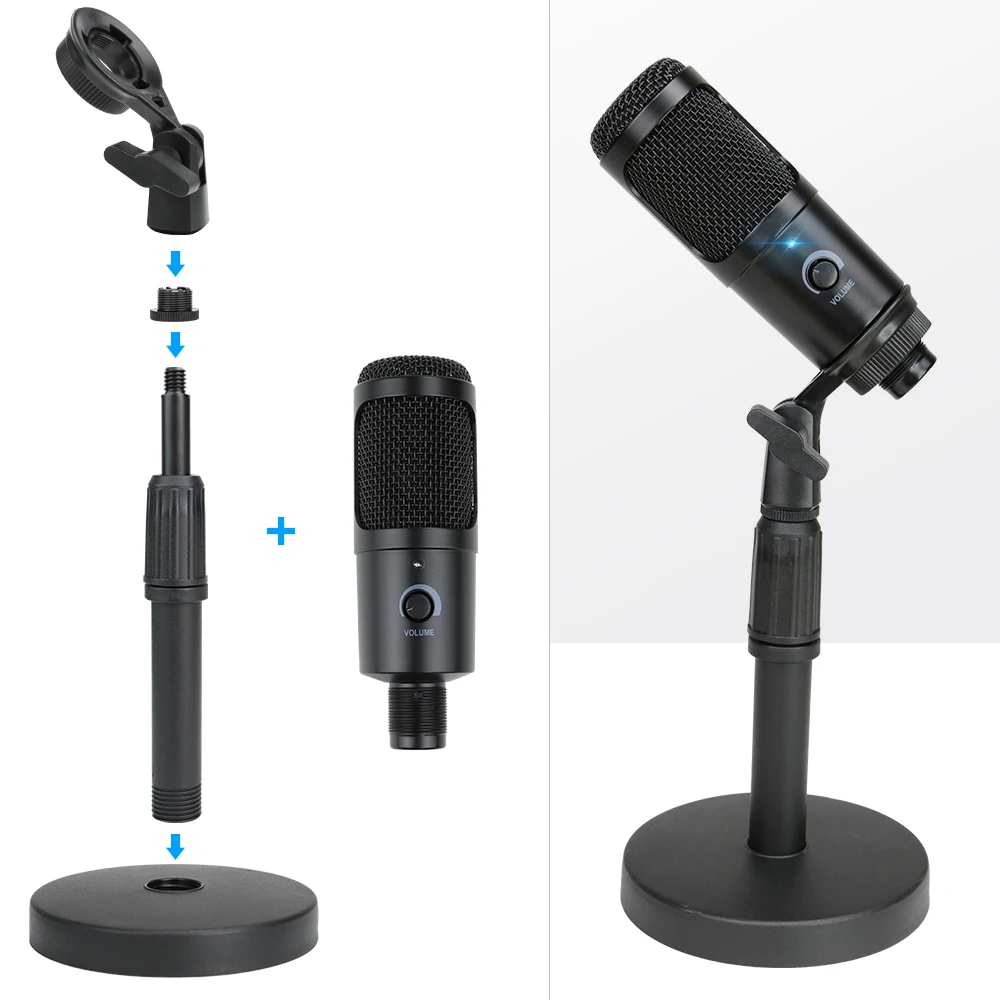 * Простота и прямое использованиеС usb-терминалом для питания конденсаторный микрофон не нуждается в звуковой карте или других вспомогательных устройствах.* Максимальное снижение уровня шумаКардиоидный пикап-узор минимизирует фоновый шум и изолирует основной источник звука.* Регулировка громкости ручки* Светодиодный индикатор, светодиодный индикатор будет мигать при подключении, показывая состояние подключения.* Широкий частотный диапазон20 Гц-20 кГц делает голосовые представления четкими, естественными и яркими.