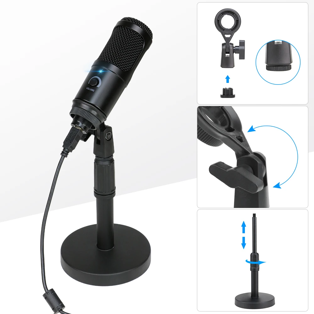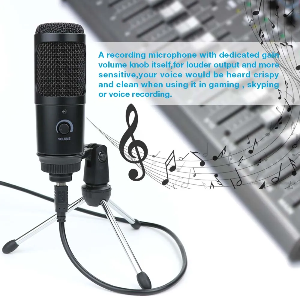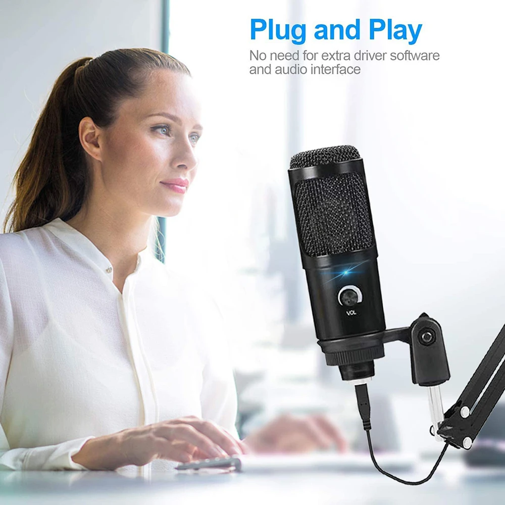 Конденсаторный USB-микрофон для студийной видеосъемки, микрофон для ПК, компьютерной записи, подкастинга, игр, пения, караоке