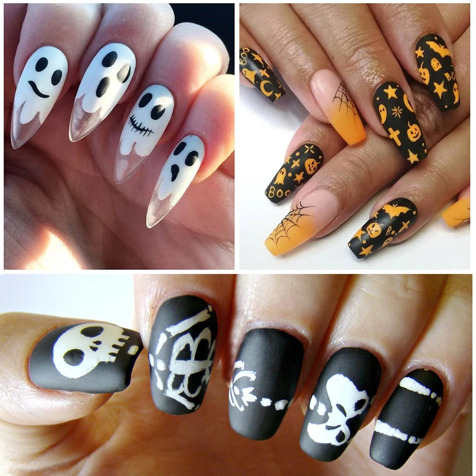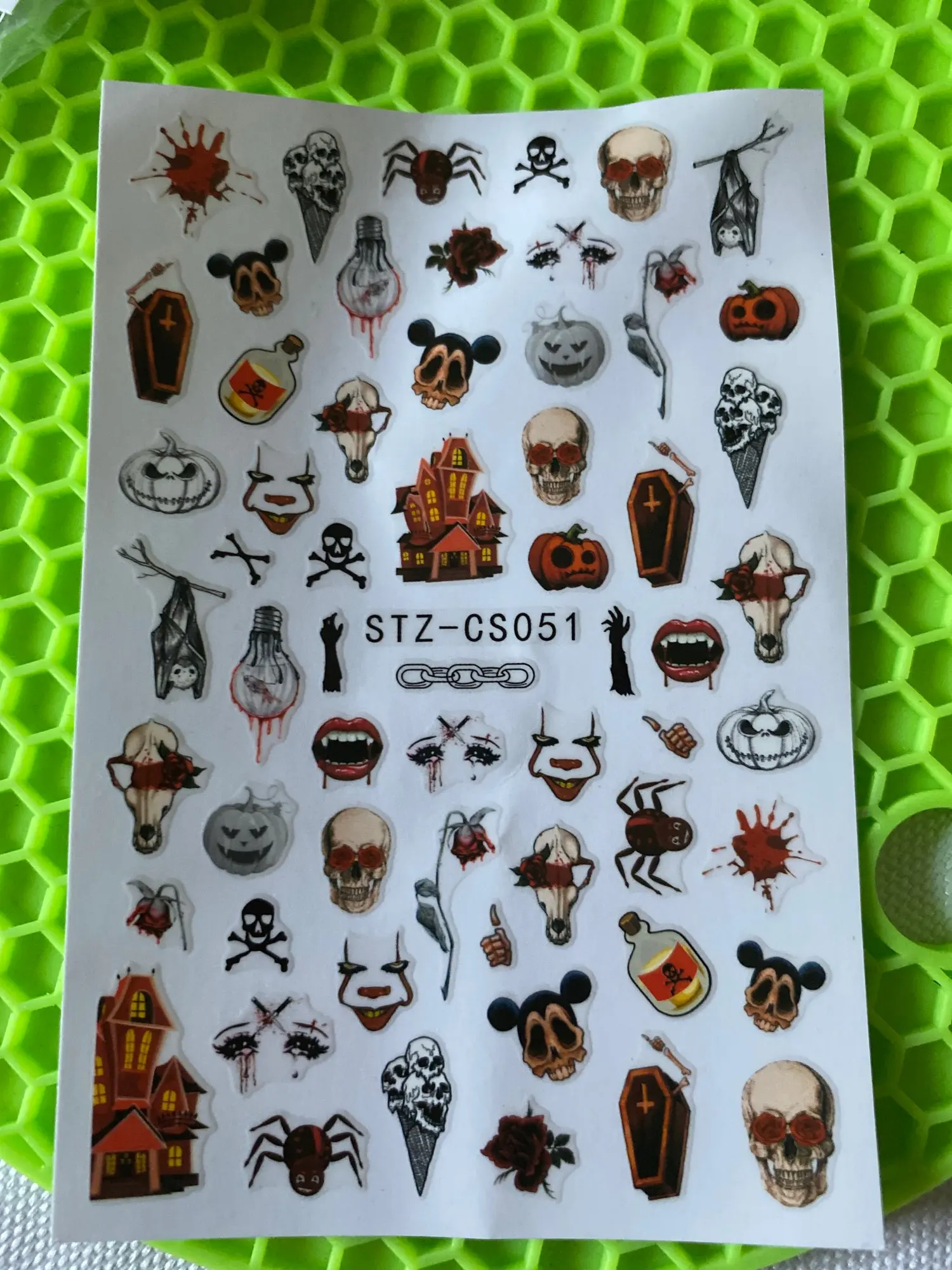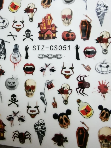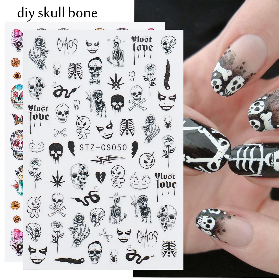 3D дизайн ногтей на Хэллоуин 2021 наклейки для дизайна ногтей аниме Череп Кость змея кленовый лист наклейки маникюр декор для ногтей CHSTZCS051-057