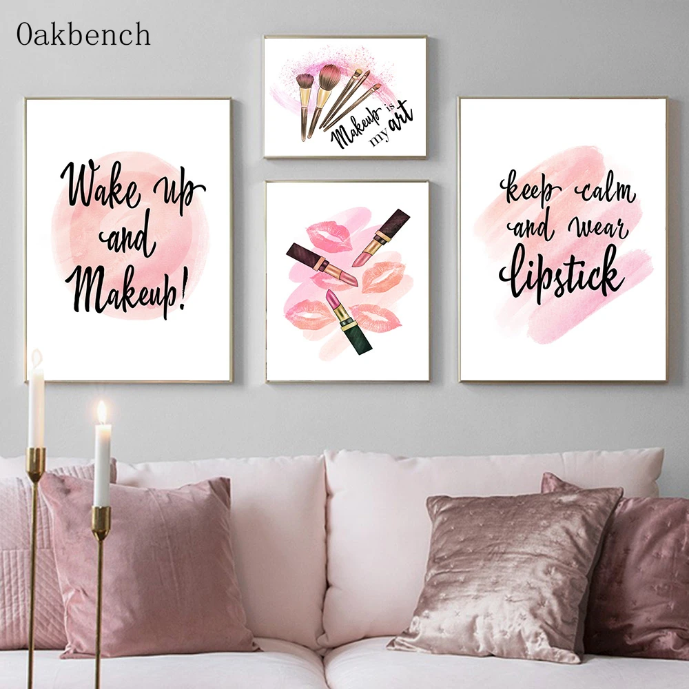 Модная Картина на холсте для девочек, Постер для макияжа, постеры с губной помадой, принты с цитатами, современные настенные картины, декор для раздевалки