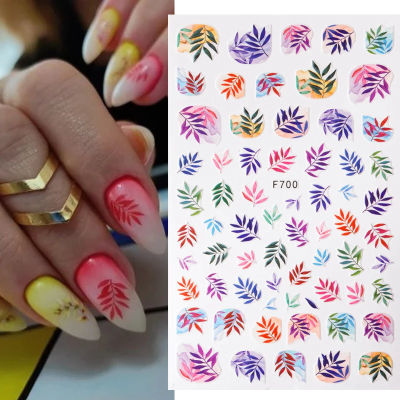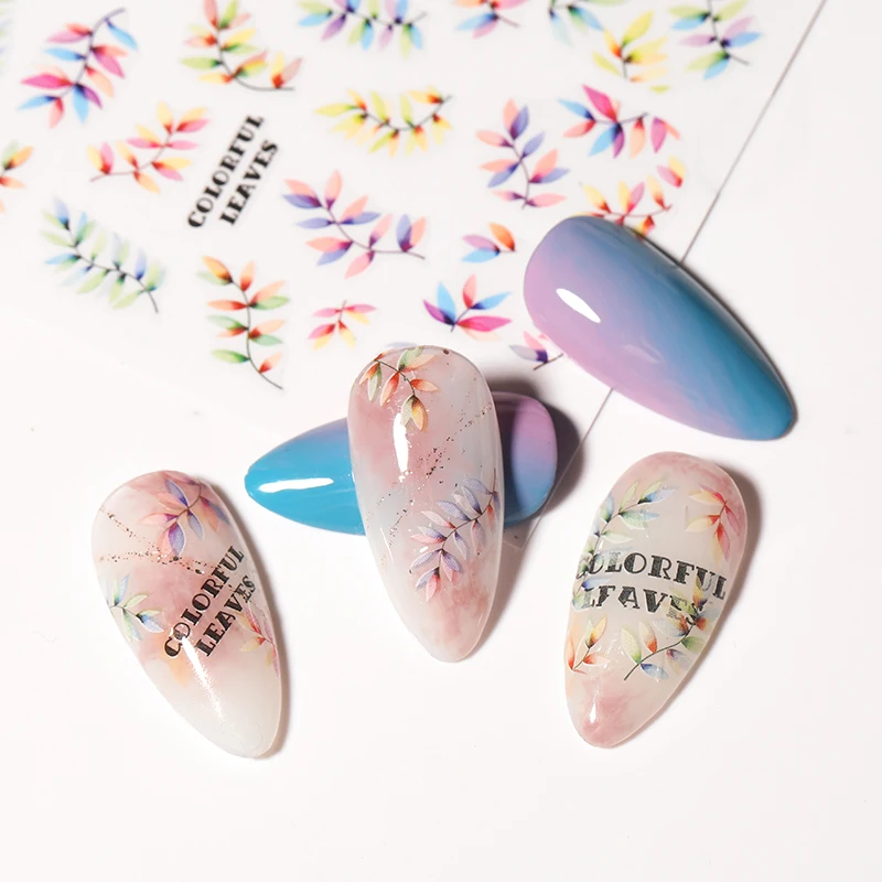 1 шт. стикеры 3D на ногти Nail Art слайдеры цветные листья цветы на...