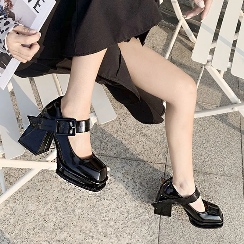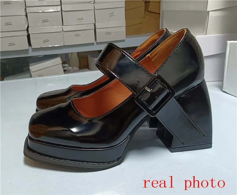 DXFANчерные туфли мэри джейн на платформе в стиле панк; Женские лак...