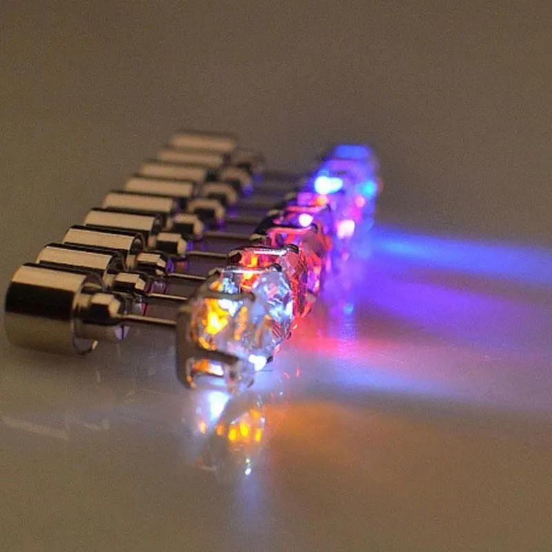 Красочные светодиодные светящиеся шпильки квадратный циркон серьги для мужчин женщин бар рейв Свадебная вечеринка сережки-гвоздики ювелирное изделие, цветной светящийся серьги