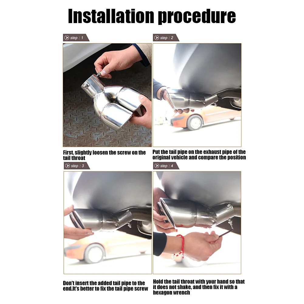 Винтовое соединение, Ослабьте винты на хвостовой трубе и поместите наконечник в соответствующее положение хвостовой трубы автомобиля, а затем затяните винты с помощью гаечного ключа. Это займет всего 5 минут, чтобы сделать это самостоятельно!