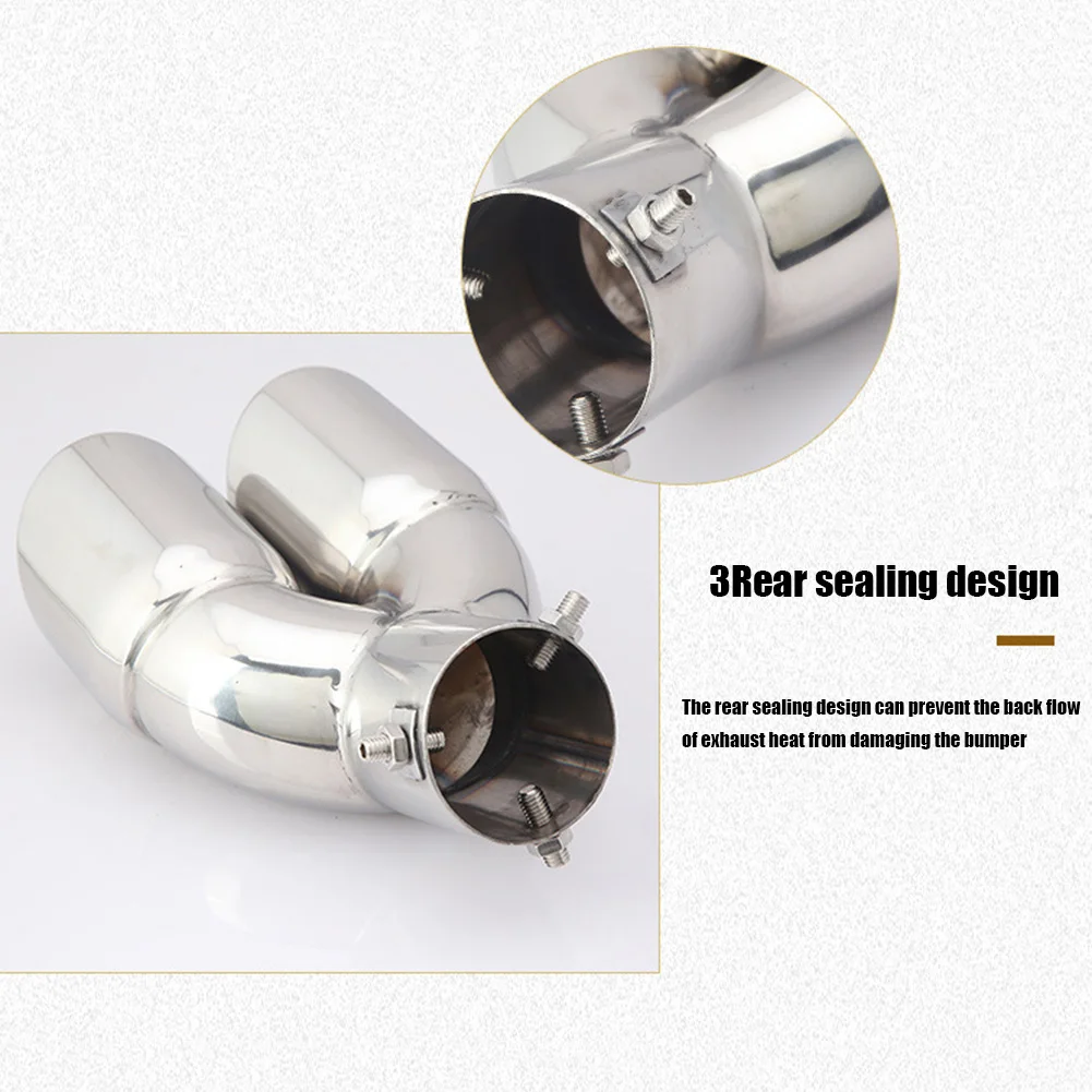 Автомобильный изогнутый двойной выхлопной трубы глушитель хвостовой трубы выпускное сопло наконечник Универсальный наконечник из нержавеющей стали двойной выход 3-дюймовый ID вход