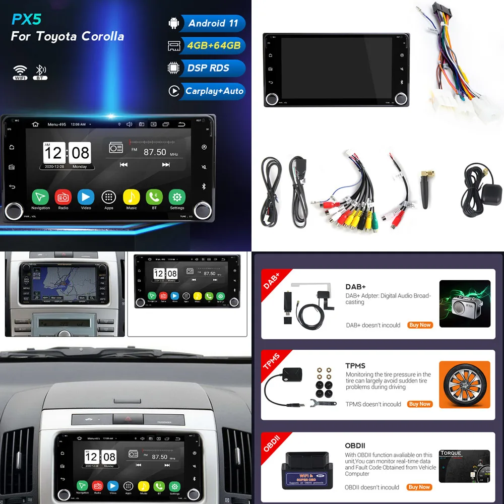 Универсальный Автомобильный мультимедийный плеер 2 Din, Android 11, стерео, для Toyota VIOS, CROWN, CAMRY, HIACE, PREVIA, COROLLA, RAV4, Wi-Fi, 4G, WiFiOBD2