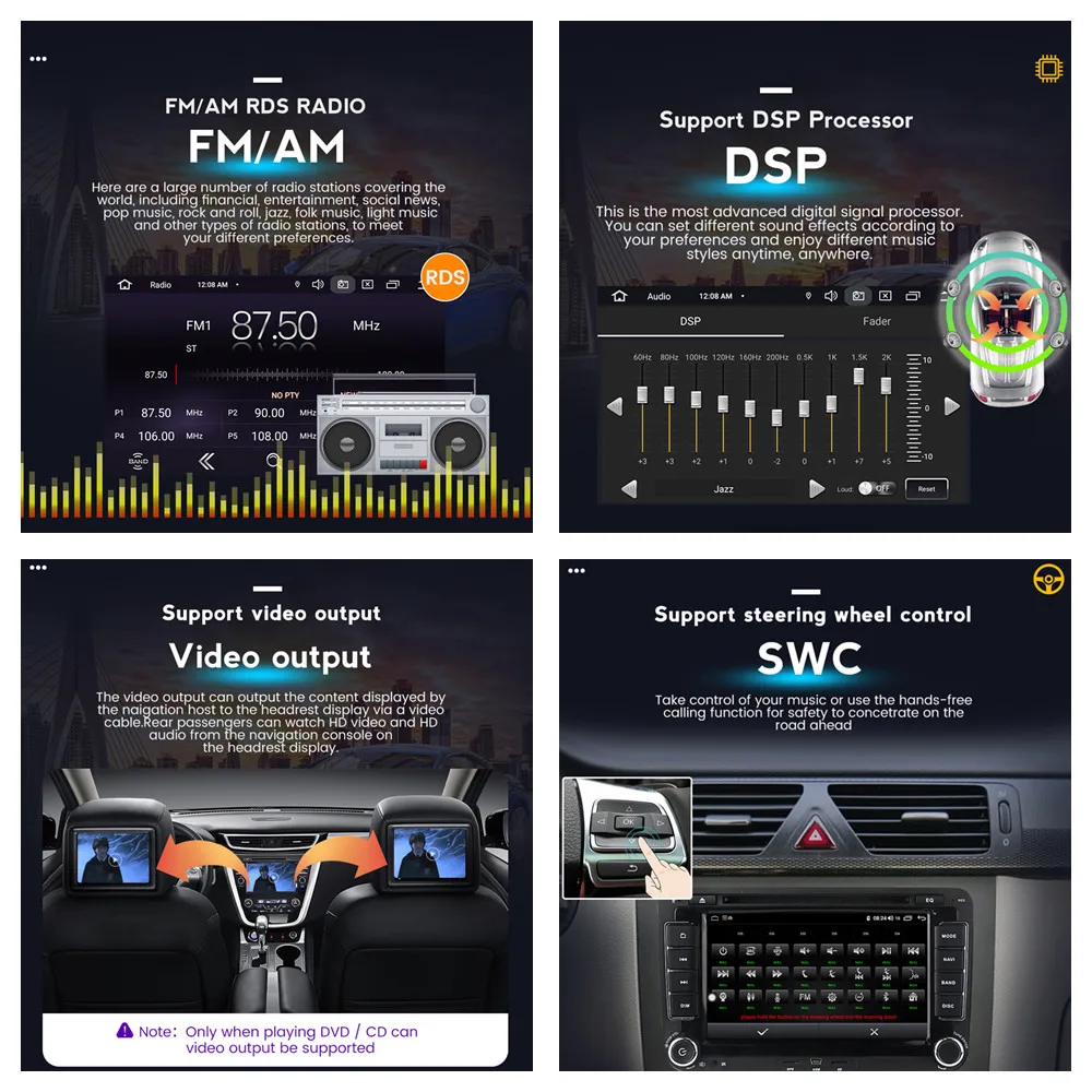 Встроенный беспроводной carplay и проводной Android авто, радио IC NXP7708, усилитель IC TAD7388, видеовыход,