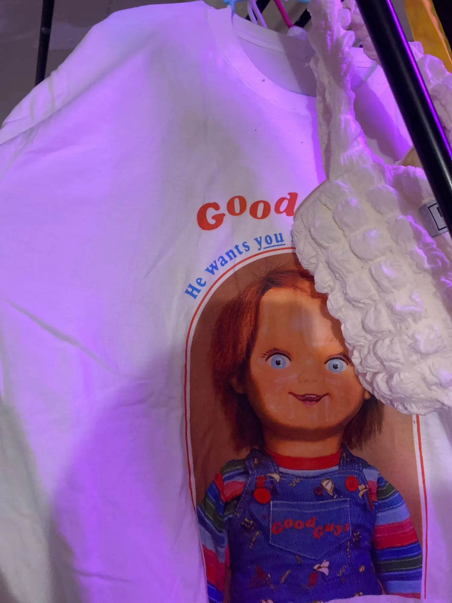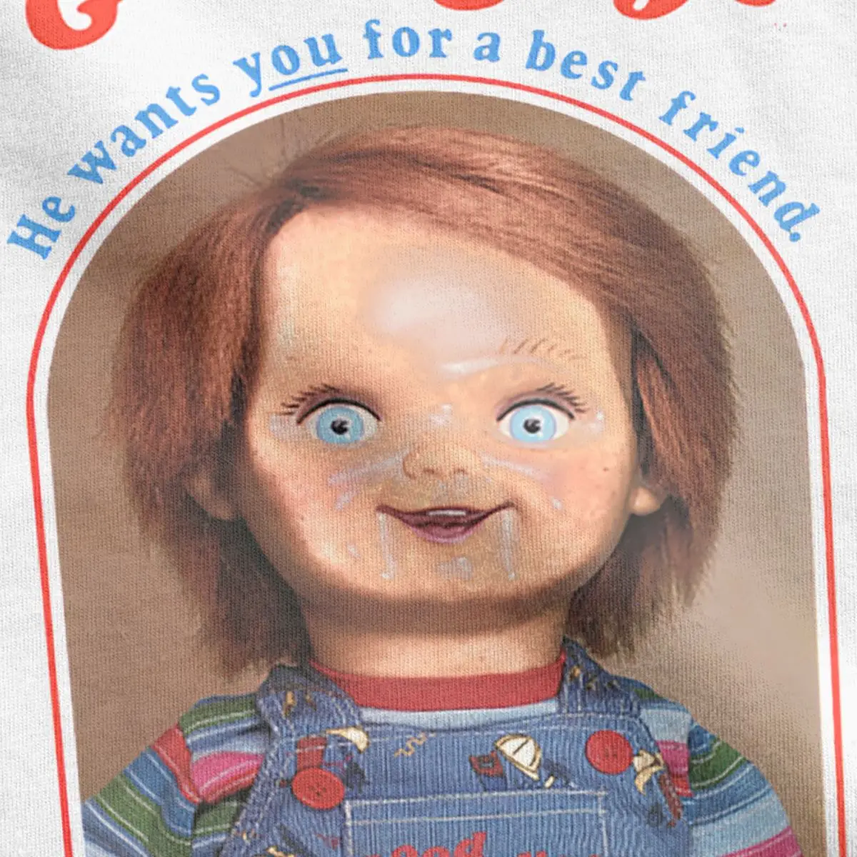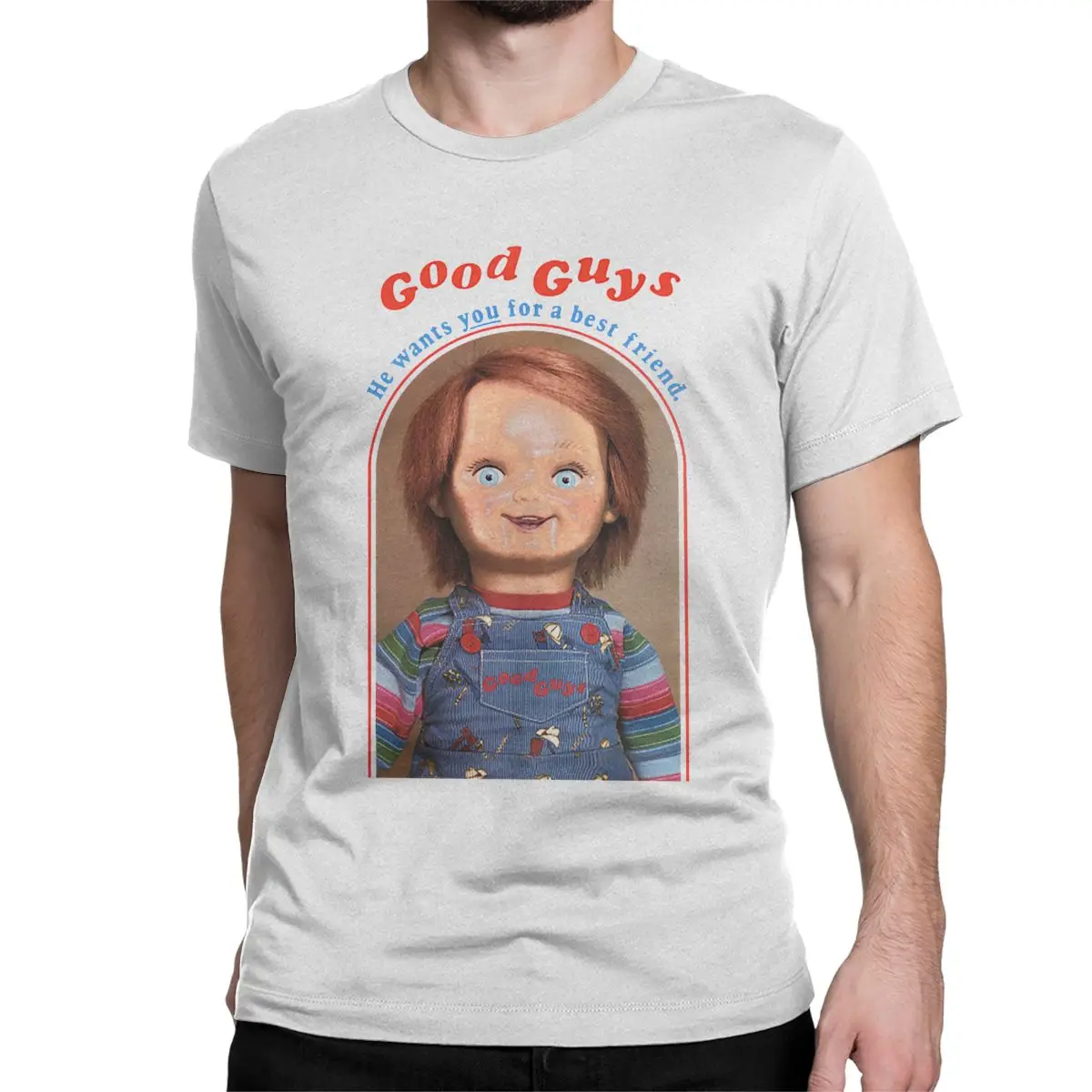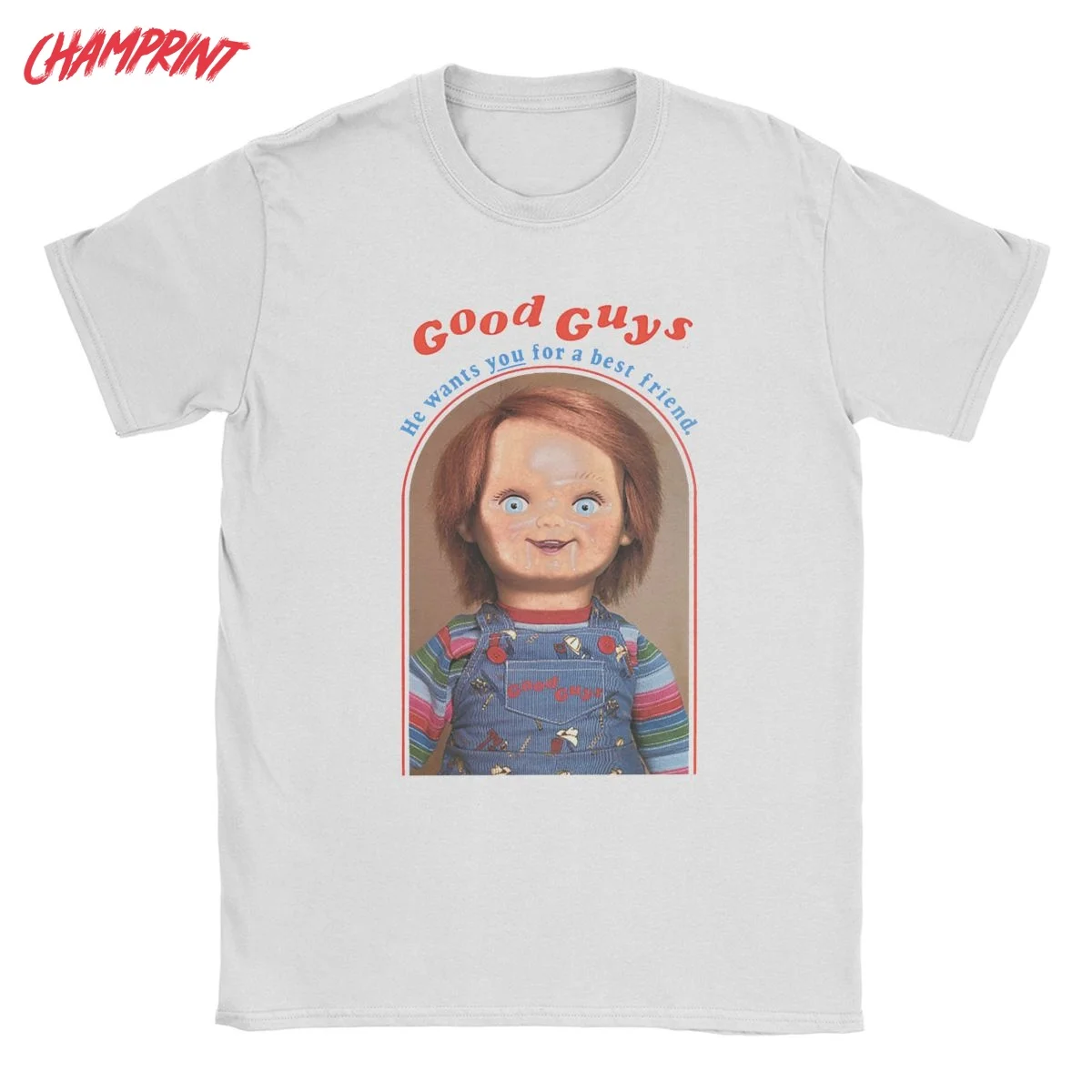 Мужские футболки с надписью He Want You To A Best Friend, Чаки, Детская Хлопковая одежда, футболка с воротником, большие размеры, забавный круглый Детский рюкзачок
