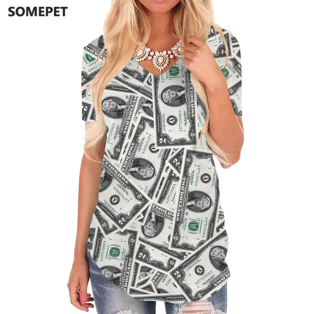SOMEPET деньги футболка женская рубашка доллара принт творчества футболки 3d Прохладный тенниска с треугольным вырезом Женская одежда модная летняя одежда в уличном стиле