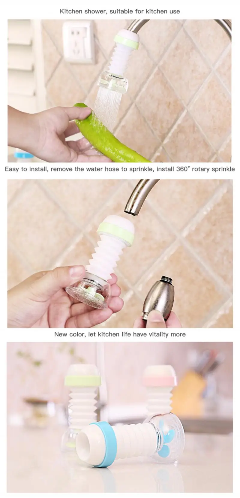 Легко установить, с Гнездо из ПВХ, не требуется никаких инструментов, подходит непосредственно на водопроводную трубу и подходит для всех стандартных кранов в доме.