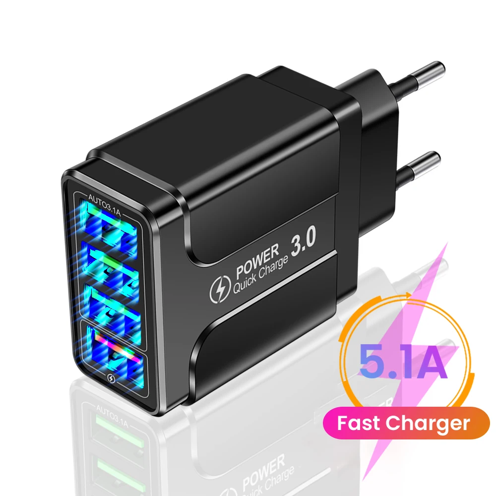 4 порта USB зарядное устройство Quick Charge 3,0 4,0 Быстрая зарядка настенный адаптер для iPhone 12 11 Xiaomi Samsung зарядное устройство для мобильных телефонов QC 3,0